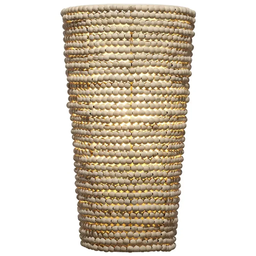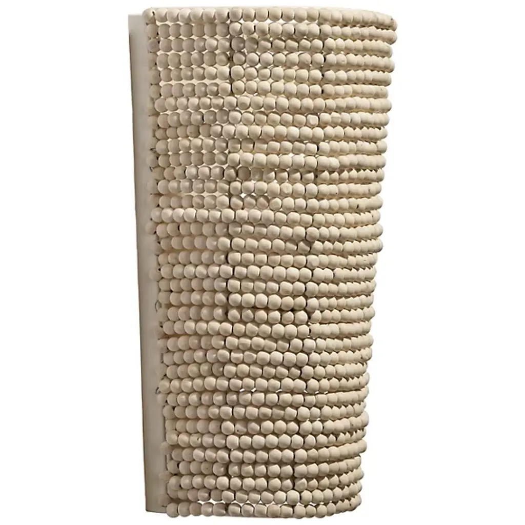 The Seawall Wall Sconce from Jamie Young Co. exudes a cool, casual, and coastal vibe, skillfully handcrafted from hundreds of small, smooth mango wood beads. Its unique design completely obscures the sturdy iron frame within, adding a touch of intrigue to any space. Versatile in placement, it can be hung facing upwards or downwards, while pairs create maximum impact, ideal for elevating your decor with a relaxed yet chic aesthetic reminiscent of coastal living.