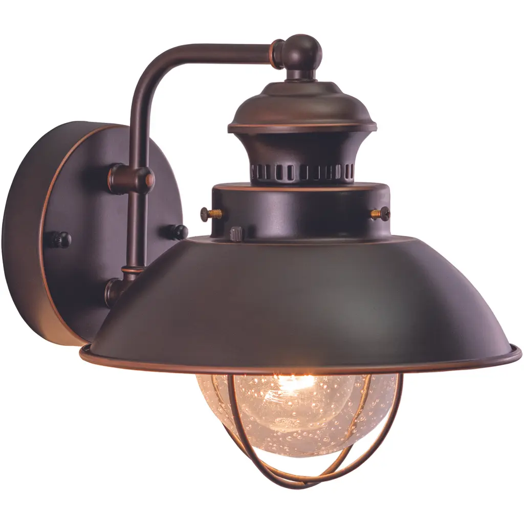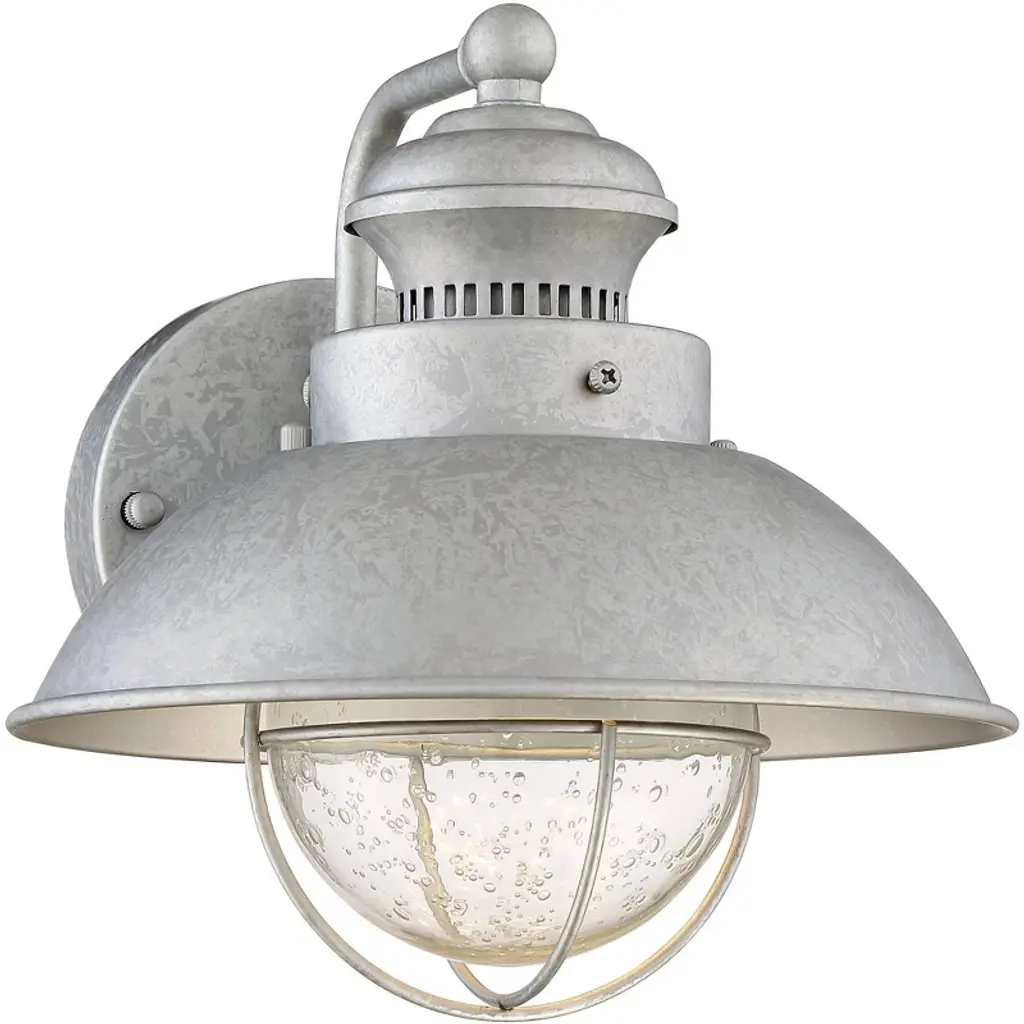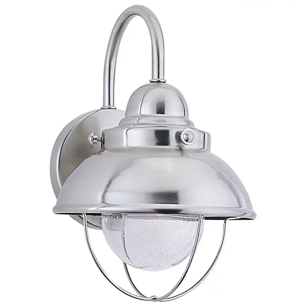 Turn your home into a seaside manor with the Sebring Outdoor Wall Sconce by Generation Lighting, formerly known as Sea Gull Lighting, Its nautical-inspired body features a smooth metal body (available in different finishes) with charming knob accents and an open parabolic cage at its base. Within the cage, a Clear Seeded Glass shade diffuses light from an inner source, eliciting a warm, shimmering ambiance that makes you feel you’re right on the coast.