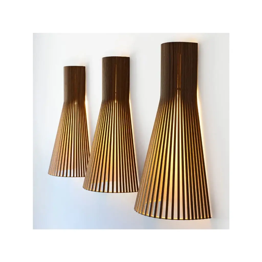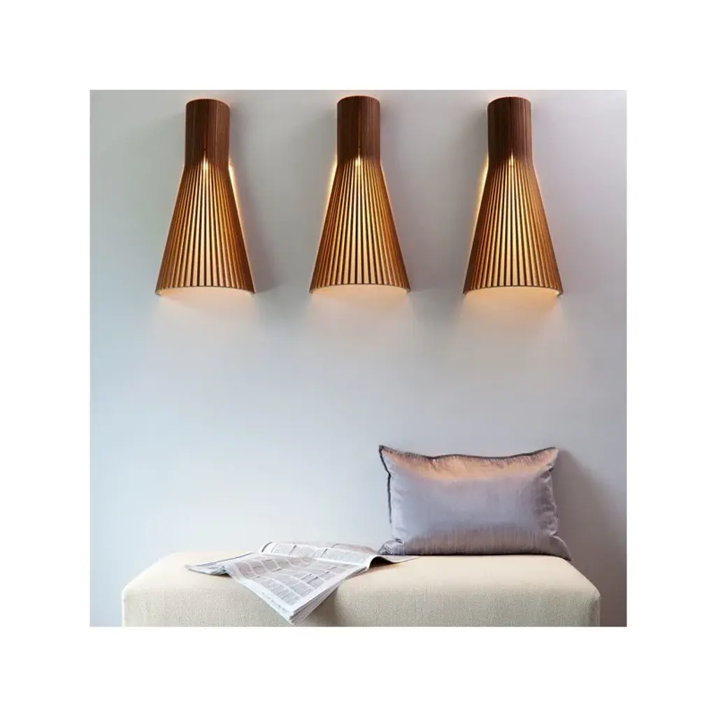 Secto 4230 is an elegant wall lamp with a slatted, wooden shade that fills the space with gentle light. The bold yet lightweight wall lamp can be mounted on the wall either upwards or downwards. Secto Design luminaires are handmade in Finland from form-pressed Finnish birch. The lamps have clean Scandinavian silhouettes, and the wooden surface gives them a warm and appealing character. Secto lamps are designed by architect Seppo Koho who wanted to develop a softly filtering light that doesn’t dazzle but invites people to come closer. Secto lamps emphasize space and environment by creating a unique atmosphere and feeling of closeness.