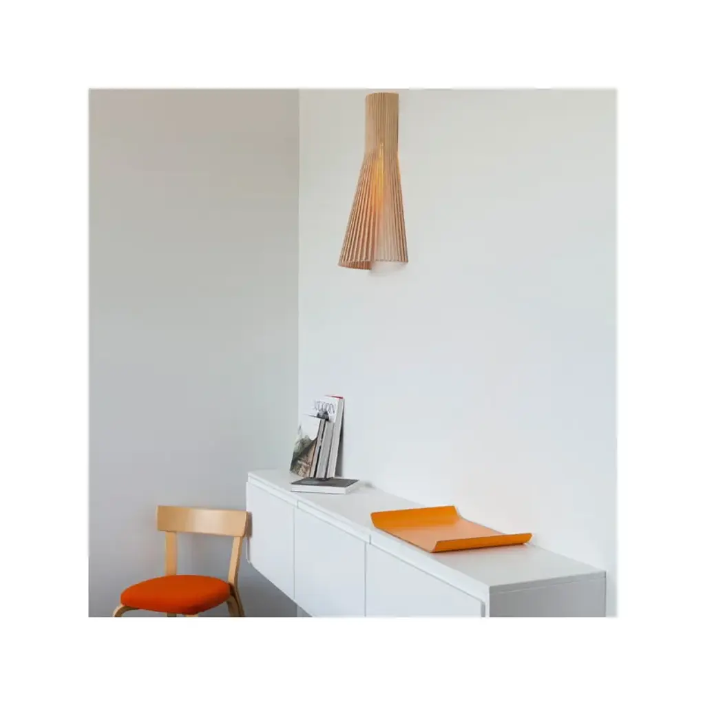 Secto 4230 is an elegant wall lamp with a slatted, wooden shade that fills the space with gentle light. The bold yet lightweight wall lamp can be mounted on the wall either upwards or downwards. Secto Design luminaires are handmade in Finland from form-pressed Finnish birch. The lamps have clean Scandinavian silhouettes, and the wooden surface gives them a warm and appealing character. Secto lamps are designed by architect Seppo Koho who wanted to develop a softly filtering light that doesn’t dazzle but invites people to come closer. Secto lamps emphasize space and environment by creating a unique atmosphere and feeling of closeness.