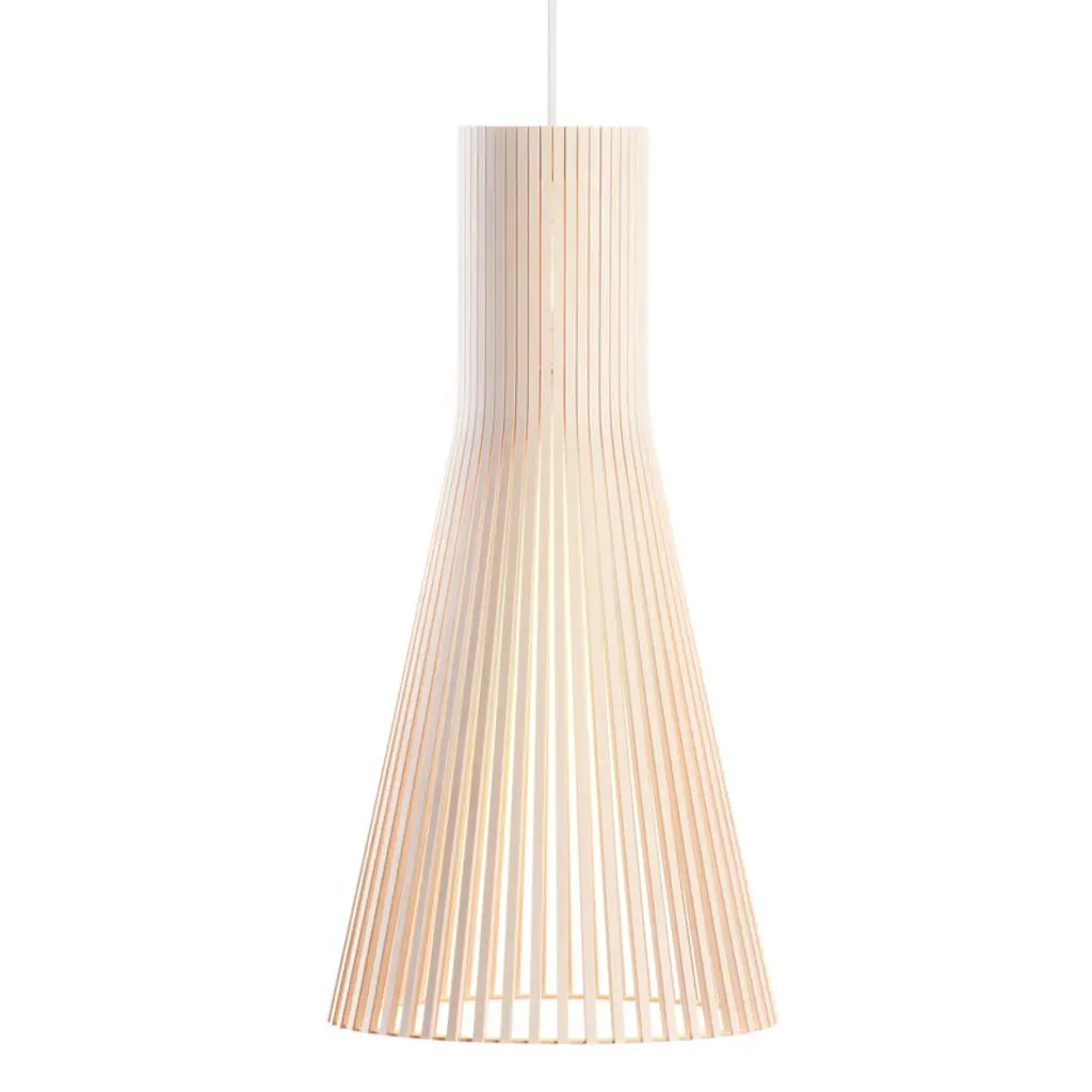 The Secto 4237 corner light is an elegant wall lamp designed to be installed in a corner of the room. Its airy wooden shade casts a gentle light on the wall, creating a sense of cohesion in the space. Perfectly suited for narrow spaces, this corner lamp can be mounted on the wall in two different ways: directing light either upwards or downwards. Secto Design luminaires are handmade in Finland from form-pressed Finnish birch. The lamps have clean Scandinavian silhouettes, and the wooden surface gives them a warm and appealing character. Secto lamps are designed by architect Seppo Koho who wanted to develop a softly filtering light that doesn’t dazzle but invites people to come closer. Secto lamps emphasize space and environment by creating a unique atmosphere and feeling of closeness.