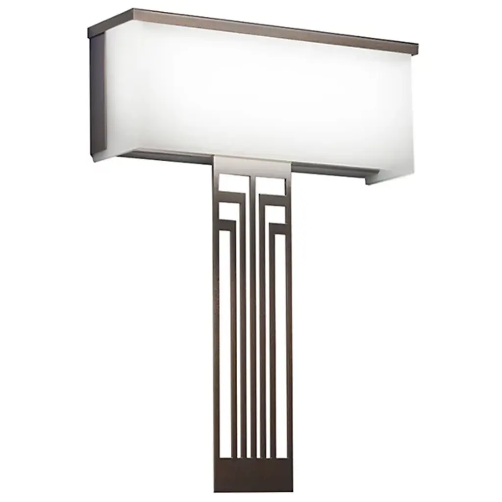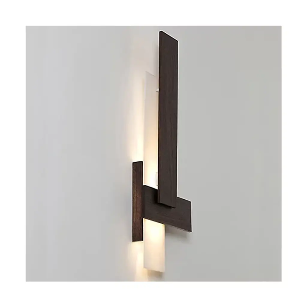 Three floating planes intersect in the Cerno Sedo Wall Sconce. Two walnut planks sit perpendicular over the frosted glass diffuser, covering the light source while also drawing the eye to the diffused light up and down the wall. Arranged like a geometric minimalistic painting, the design upholds the heralded ideals that geometric forms and lines can be pleasing and inviting.