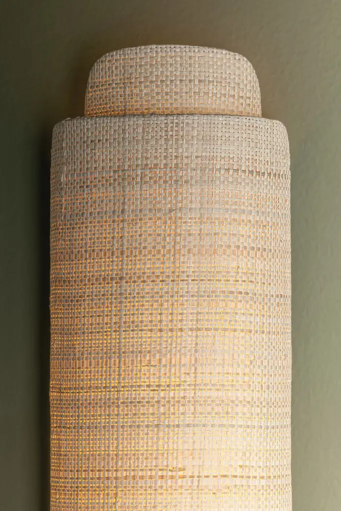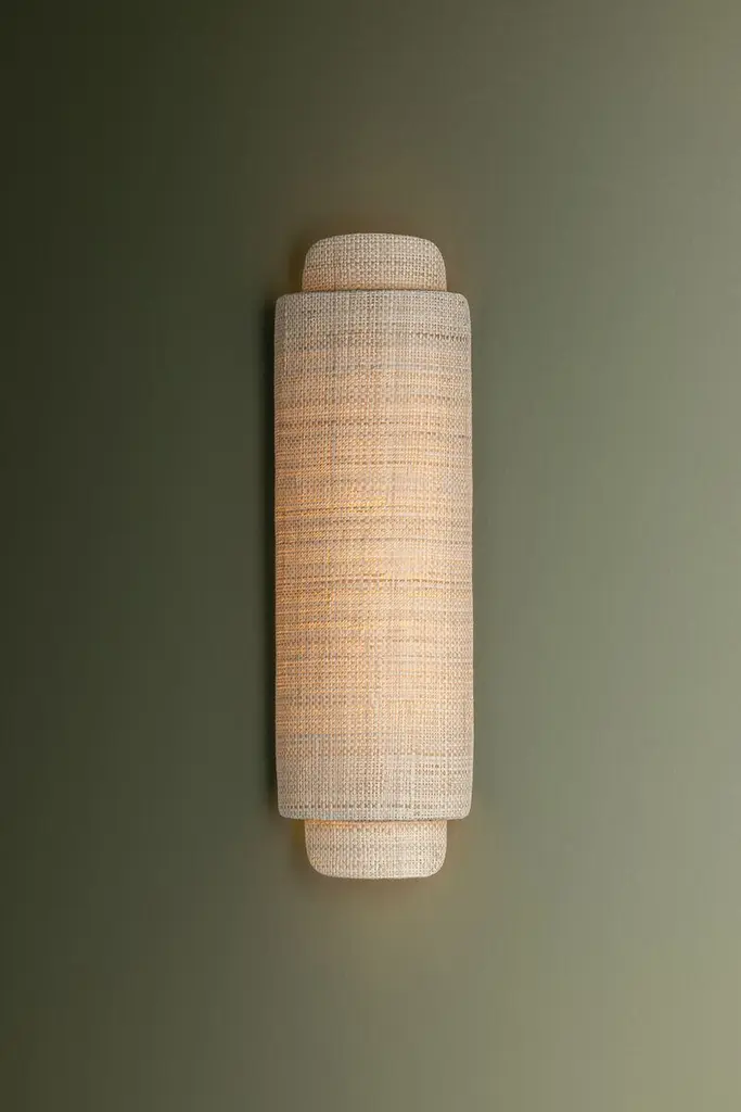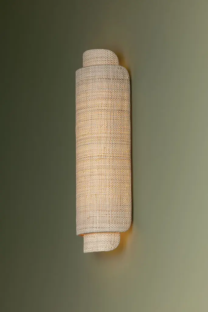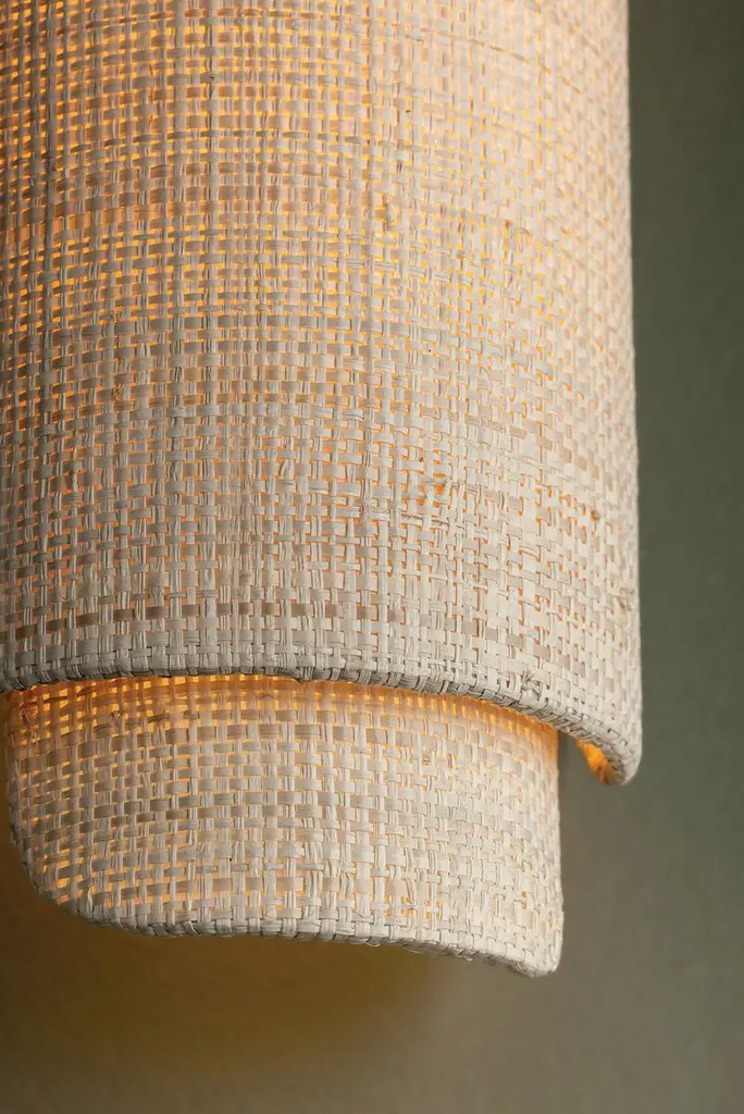Crafted from natural Saguran Weave, the Seldon sconce adds a dose of textural interest to any space. Its minimalist design features two overlapping folded shades with softly curled, leaf-like edges. Seldon emits a warm, diffused light through its translucent shades and out from both ends. Due to the one-of-a-kind nature of the medium, exact colors and patterns may vary slightly from the image shown.