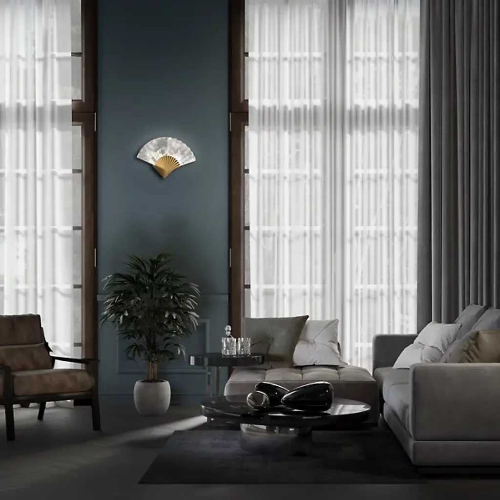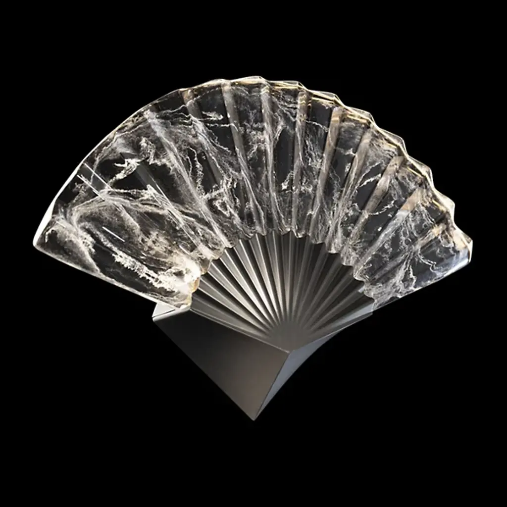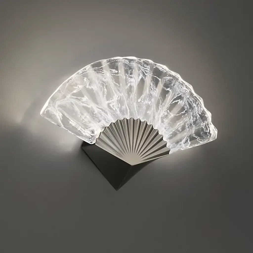 The Sensu LED Wall Sconce from Modern Forms features opulent origami artistry in lighting. A hazy, cloudy acrylic patterned shade has meticulously crafted folds that act as prismatic marvels, beautifully redirecting the integrated LEDs' radiance. The unique die-cast spun aluminum body and decorative acrylic create a bold, artistic statement. ADA compliant and designed for wall mounting in an upward orientation only, it includes a universal input voltage driver that fits a pancake junction box. The high-powered replaceable LED module offers a CRI of 90, rated for 48,000 hours, and a color temperature of 3000K.