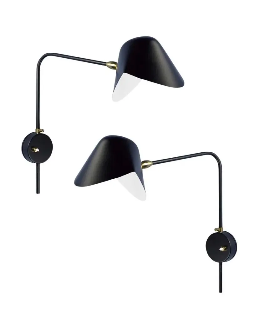 Serge Mouille 'Antony' Wall Lamps In Black - A Pair