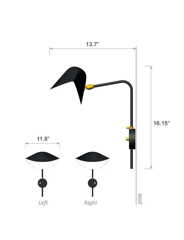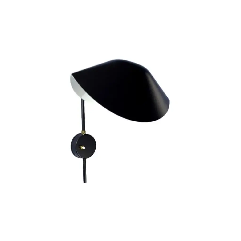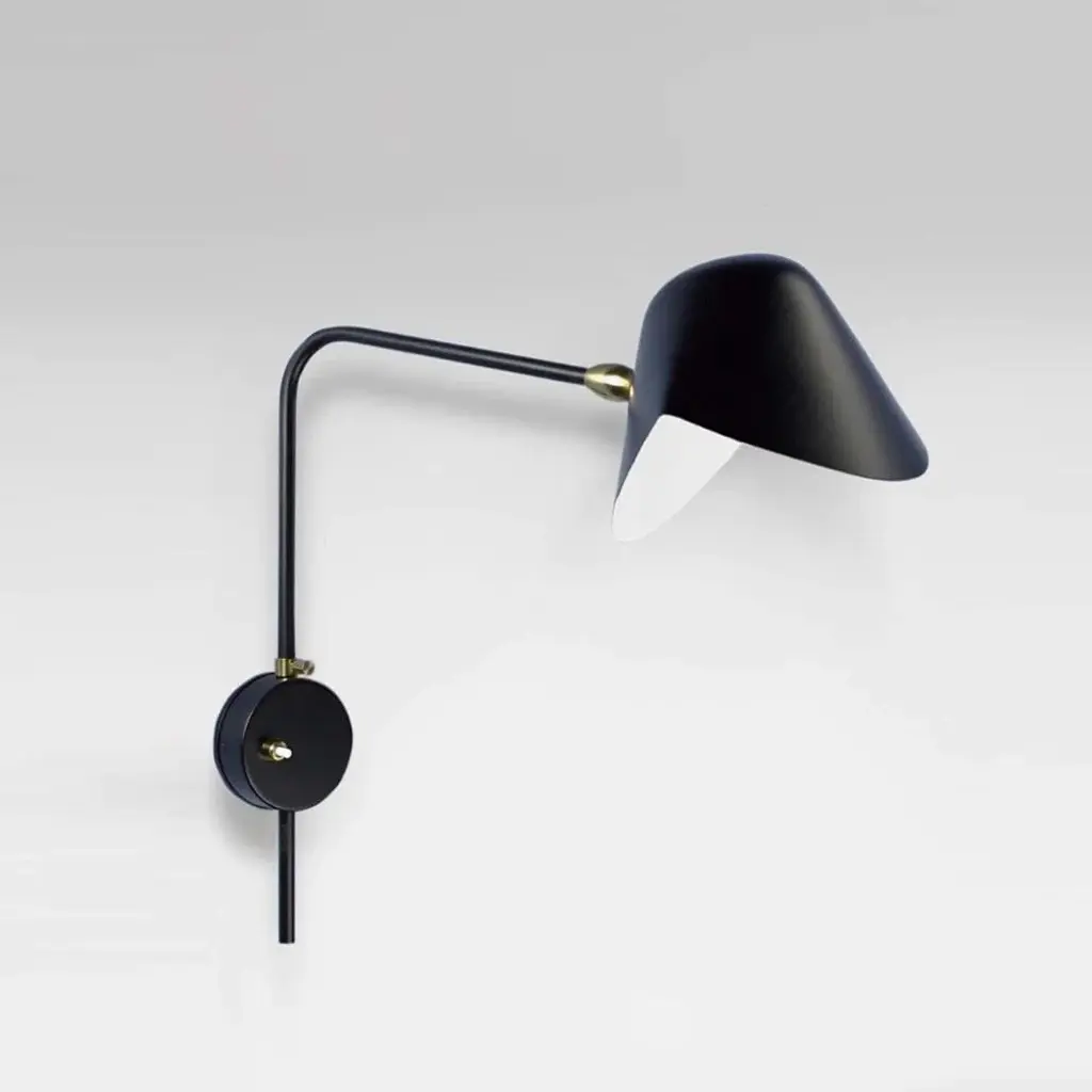 Pair of Serge Mouille 'Antony' Wall Lamps in Black. Originally designed in 1953, this iconic lamp is still made by Edition Serge Mouille in France using many of the same small-scale manufacturing techniques and scrupulous attention to detail, materials and craftsmanship. Executed in painted black metal with a white interior diffuser. The adjustable shade allows for maximum flexibility of light in almost any direction. Includes certificate of authenticity and engraved serial number. Price is per pair. Also available in an all-white version. Accommodates 1x 60W equivalent candelabra LED bulb (lower with incandescent). Not UL listed. Round backplate has been professionally modified for mounting and hardwiring over a standard American j-box. Comes in a right/left configuration with push button on/off switches on opposite sides. Current Lead time 26 weeks or more. Inventory availability subject to change at any time. For time-sensitive orders, kindly inquire prior to purchasing. Made to order.