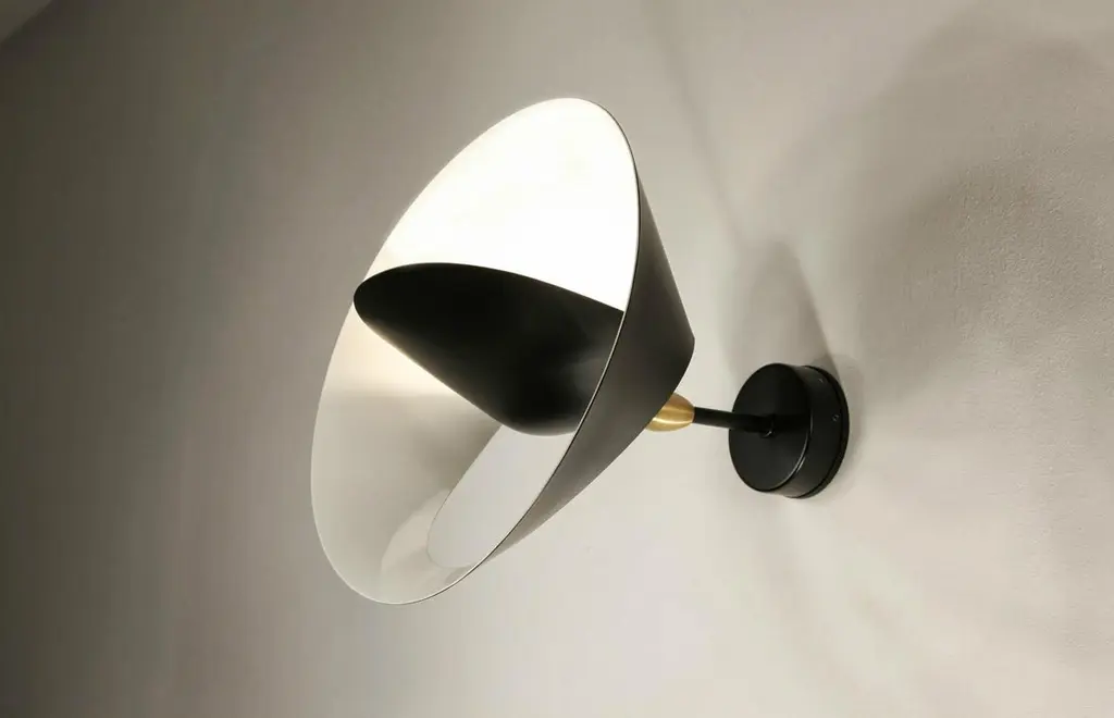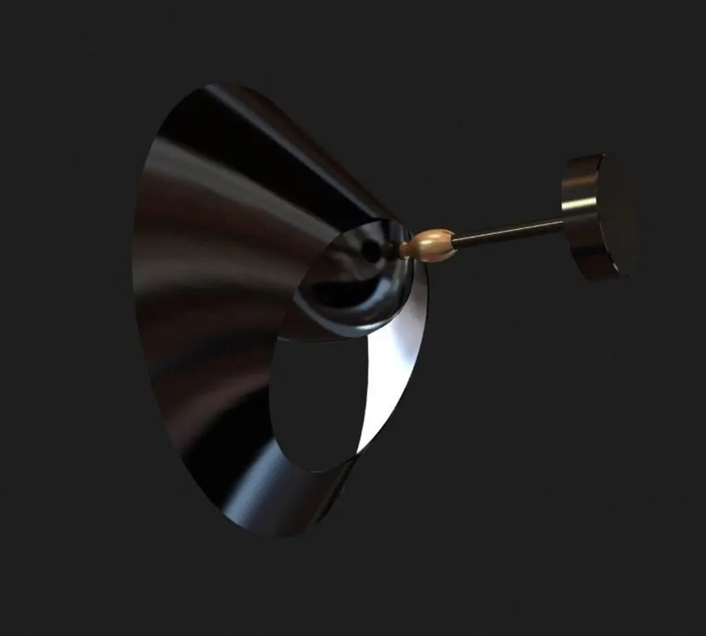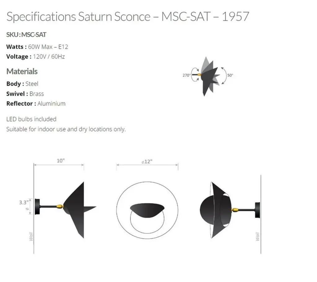 A partial cut allows the outer edge to bend revealing a sculpted ring encircling a central cone reflector to both diffuse and project light into the room. The result is reminiscent of a heavenly body.Painted aluminum and steel with brass fixtures. Switch optionsOnly customization is with switch or without switchWHAT SETS US APART? - Technical expertise - Full line of products - Availability - Customization - 5 year guarantee - Secured shipment - Small Repairs - After sale service - Experience (we introduced these lamps to the US, 23 years ago).WHAT TO LOOK OUT FOR:- No expensive international shipping, - No Customs fee- No deadlineAll lamps have been thoroughly inspected with our 44 check points upon arrival, which gives us the confidence to offer a 5-year guarantee to our clients.
