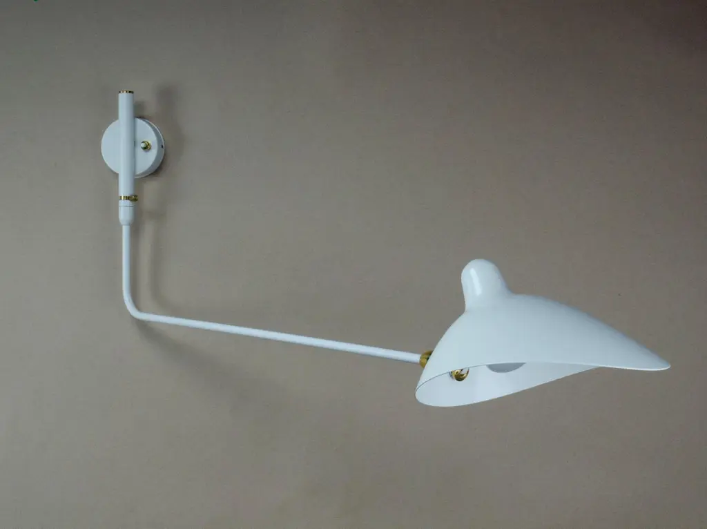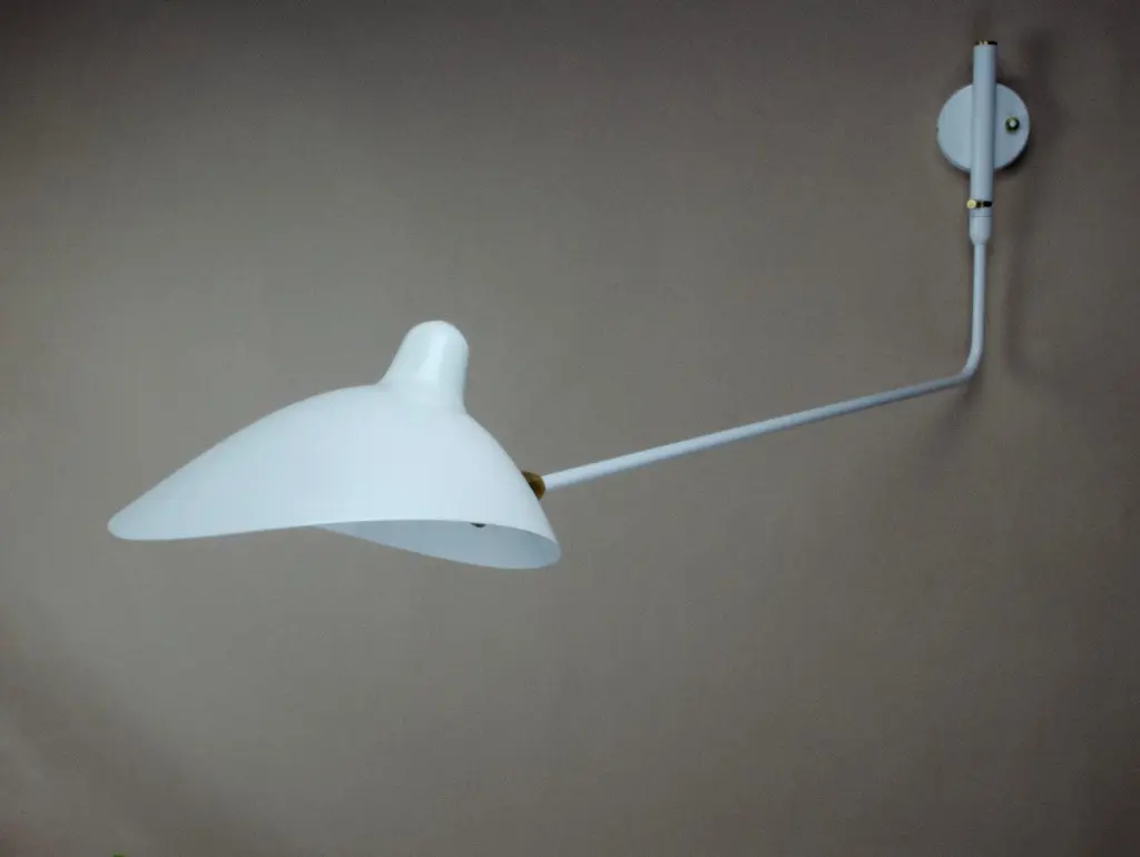 The 1 (straight) arm rotating sconce finds its place above a desk, an armchair, or a bed. The rotation, from wall to wall, allows a range of lighting that will be appreciated especially as a reading lamp. Note that this lamp is the only one in the entire collection that can be mounted upside down (arm running above the canopy). This trick has been applied several times when J-boxes are too low inside the wall.Custom length available.COLOR OPTIONAvailable in Black or WhiteFEATURESArm rotates from wall to wall without ever touching it. Shade rotates and swivels.CUSTOMIZATIONCustomization possible for arm's length. Arm length = from wall to the tip of the shade.SWITCH OPTIONSThe Rotating Wall Fixture with 1 Straight Arm is hardwired. The light bulb can be controled from the wall switch or by the switch installed on the mounting plate. Switch is optionalBest fit dimmable LED bulb providedWHAT SETS US APART? - Technical expertise - Full line of products - Availability - Customization - 5 year guarantee - Secured shipment - Small Repairs - After sale service - Experience (we introduced these lamps to the US, 22 years ago).WHAT TO LOOK OUT FOR:International shipping is expensive, lengthy and somewhat risky, potentially a stressful experience - Expensive: Most Mouille lamps are shipped in very large boxes. Shipping costs are calculated based on the volume of the box, Add this to Customs duties, insurance and US entry fee, and the final price will be approximately 25% more than your final net price. - Lengthy: Your lamp should be shipped by plane which takes about 8 to 9 hours flying from Europe to New York. Transportation is still deeply affected by the pandemic’s disruptions. - Damages: Individual boxes traveling next to heavier bundled goods typical of int’l shipping are more prone to damages. HOW WE DO IT:No need to go through all this, we’ve done this part. The lamps are sold from NY, ready to ship to you for your peace of mind. We thoroughly inspect them with our 44 check points before shipping, which gives us the confidence to offer a 5-year guarantee to our clients.