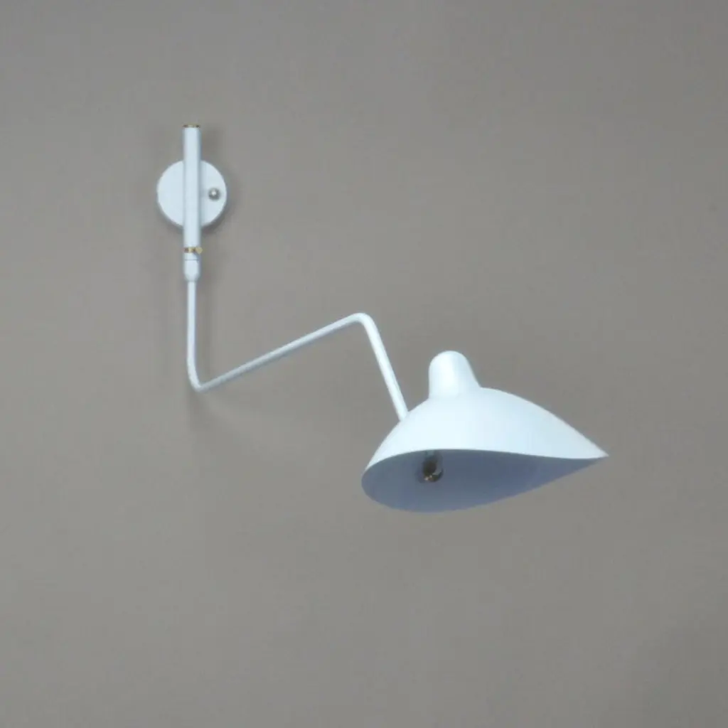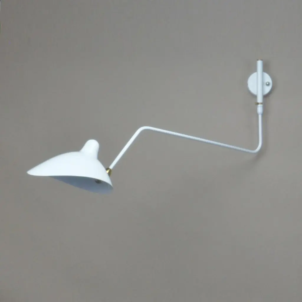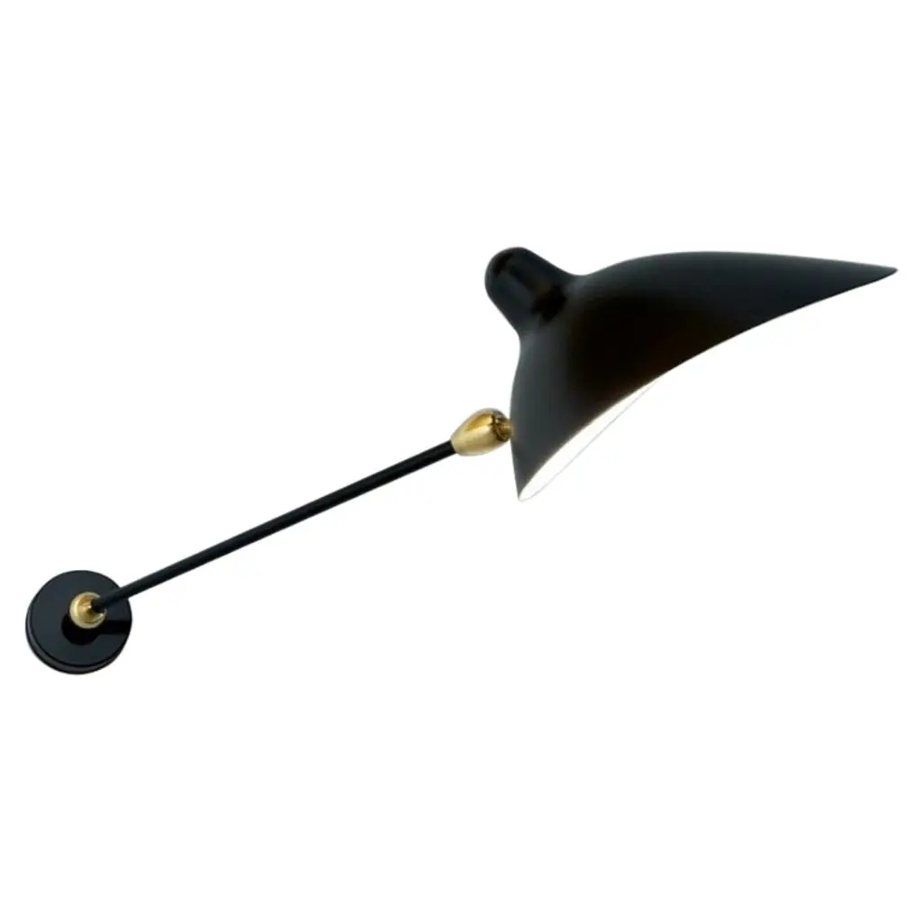 The one arm curved sconce is both stylish and practical as it can be used in many different design applications. The shade tilts and revolves on a brass fitting while the arm swings providing a very versatile lighting option.COLOR OPTIONAvailable in Black or WhiteFEATURESArm rotates from wall to wall without ever touching it. Shade rotates and swivels.CUSTOMIZATIONCustomization possible for arm's length. Arm length = from wall to the tip of the shade.SWITCH OPTIONSThe Rotating Wall Fixture with 1 Straight Arm is hardwired. The light bulb can be controled from the wall switch or by the switch installed on the mounting plate. Switch is optionalBest fit dimmable LED bulb providedWHAT SETS US APART? - Technical expertise - Full line of products - Availability - Customization - 5 year guarantee - Secured shipment - Small Repairs - After sale service - Experience (we introduced these lamps to the US, 22 years ago).WHAT TO LOOK OUT FOR:International shipping is expensive, lengthy and somewhat risky, potentially a stressful experience - Expensive: Most Mouille lamps are shipped in very large boxes. Shipping costs are calculated based on the volume of the box, Add this to Customs duties, insurance and US entry fee, and the final price will be approximately 25% more than your final net price. - Lengthy: Your lamp should be shipped by plane which takes about 8 to 9 hours flying from Europe to New York. Transportation is still deeply affected by the pandemic’s disruptions. - Damages: Individual boxes traveling next to heavier bundled goods typical of int’l shipping are more prone to damages. HOW WE DO IT:No need to go through all this, we’ve done this part. The lamps are sold from NY, ready to ship to you for your peace of mind. We thoroughly inspect them with our 44 check points before shipping, which gives us the confidence to offer a 5-year guarantee to our clients.