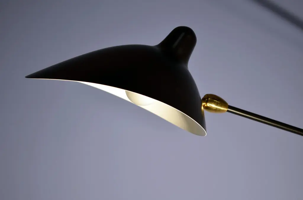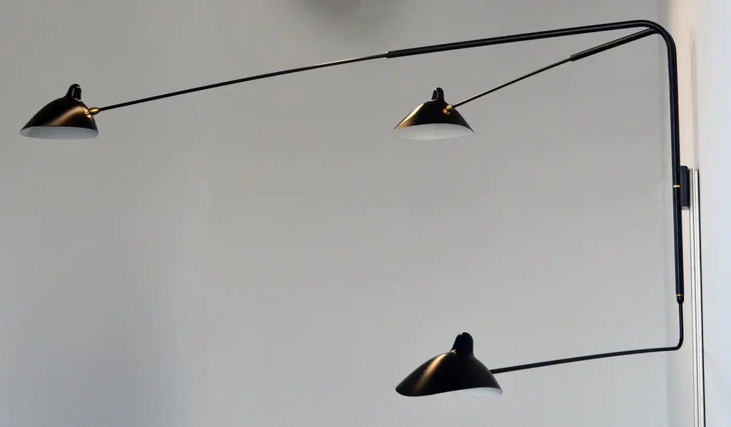 DESCRIPTION:With arms measuring 52, 58 and 88 inches, this sconce can project light into a room at varying angles due to the independent rotation of each arm and each shade. Switches located on mounting plate. 32” h.FEATURES:2 Upper arms and lower arm independently rotate from wall to wall without ever touching it, however the 2 upper arms rotate on the same plane. Arms are not telescopic, the upper thinner arms do not slide in the upper thicker arms. 2 "Chapeau" (Hat) shades on top and "Casquette" (Cap) shade rotate and swivel.CUSTOMIZATION:Customization is possible for the distance between the upper and lower arms as well as for arms' lengths. Arm length = from wall to the tip of the shade.SWITCH OPTION:The Rotating Wall Fixture with 3 Arms is hardwired. The light bulbs can be controlled together from the wall switch or independently with 2 switches (1 for the 2 upper arms, 1 for the lower arm) installed on the mounting plate.Best fit dimmable LED bulbs providedWHAT SETS US APART? - Technical expertise - Full line of products - Availability - Customization - 5 year guarantee - Secured shipment - Small Repairs - After sale service - Experience (we introduced these lamps to the US, 22 years ago).WHAT TO LOOK OUT FOR:International shipping is expensive, lengthy and somewhat risky, potentially a stressful experience - Expensive: Most Mouille lamps are shipped in very large boxes. Shipping costs are calculated based on the volume of the box, Add this to Customs duties, insurance and US entry fee, and the final price will be approximately 25% more than your final net price. - Lengthy: Your lamp should be shipped by plane which takes about 8 to 9 hours flying from Europe to New York. Transportation is still deeply affected by the pandemic’s disruptions. - Damages: Individual boxes traveling next to heavier bundled goods typical of int’l shipping are more prone to damages. HOW WE DO IT:No need to go through all this, we’ve done this part. The lamps are sold from NY, ready to ship to you for your peace of mind. We thoroughly inspect them with our 44 check points before shipping, which gives us the confidence to offer a 5-year guarantee to our clients.