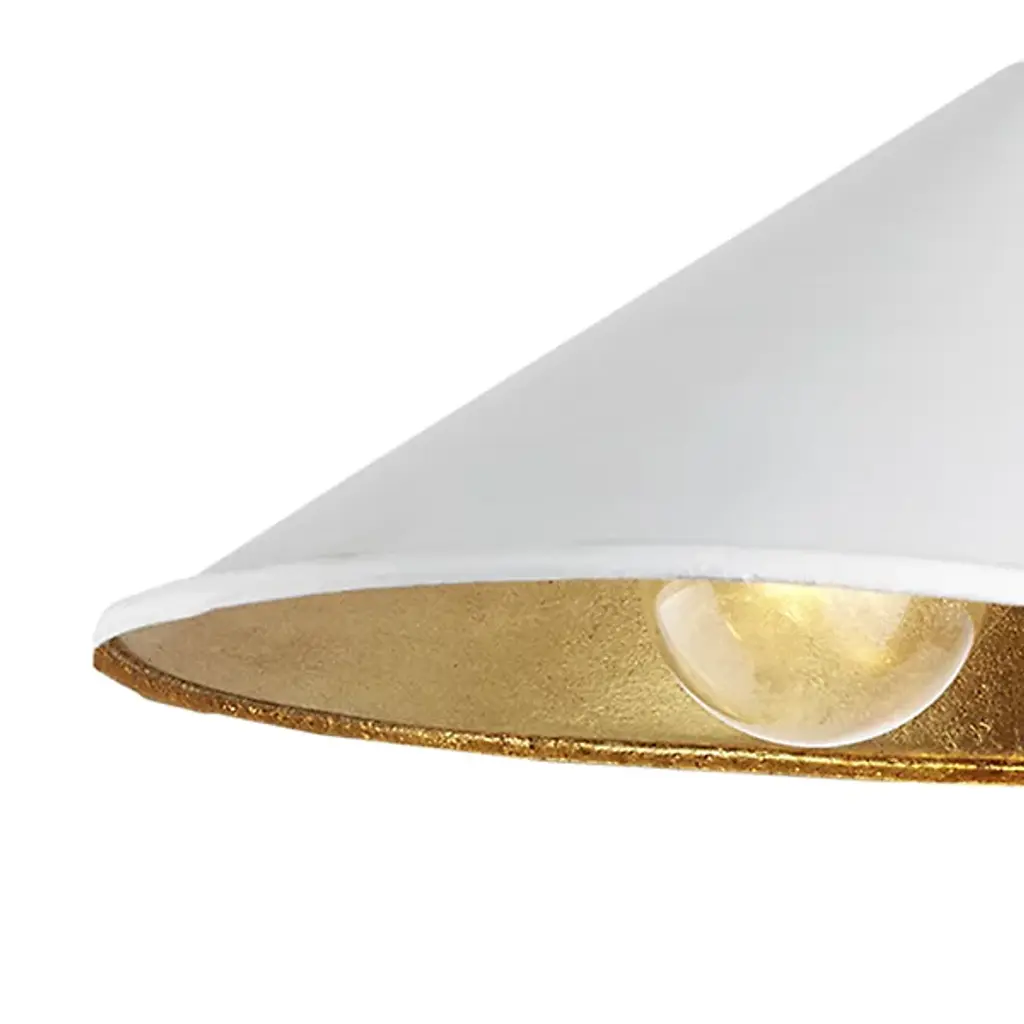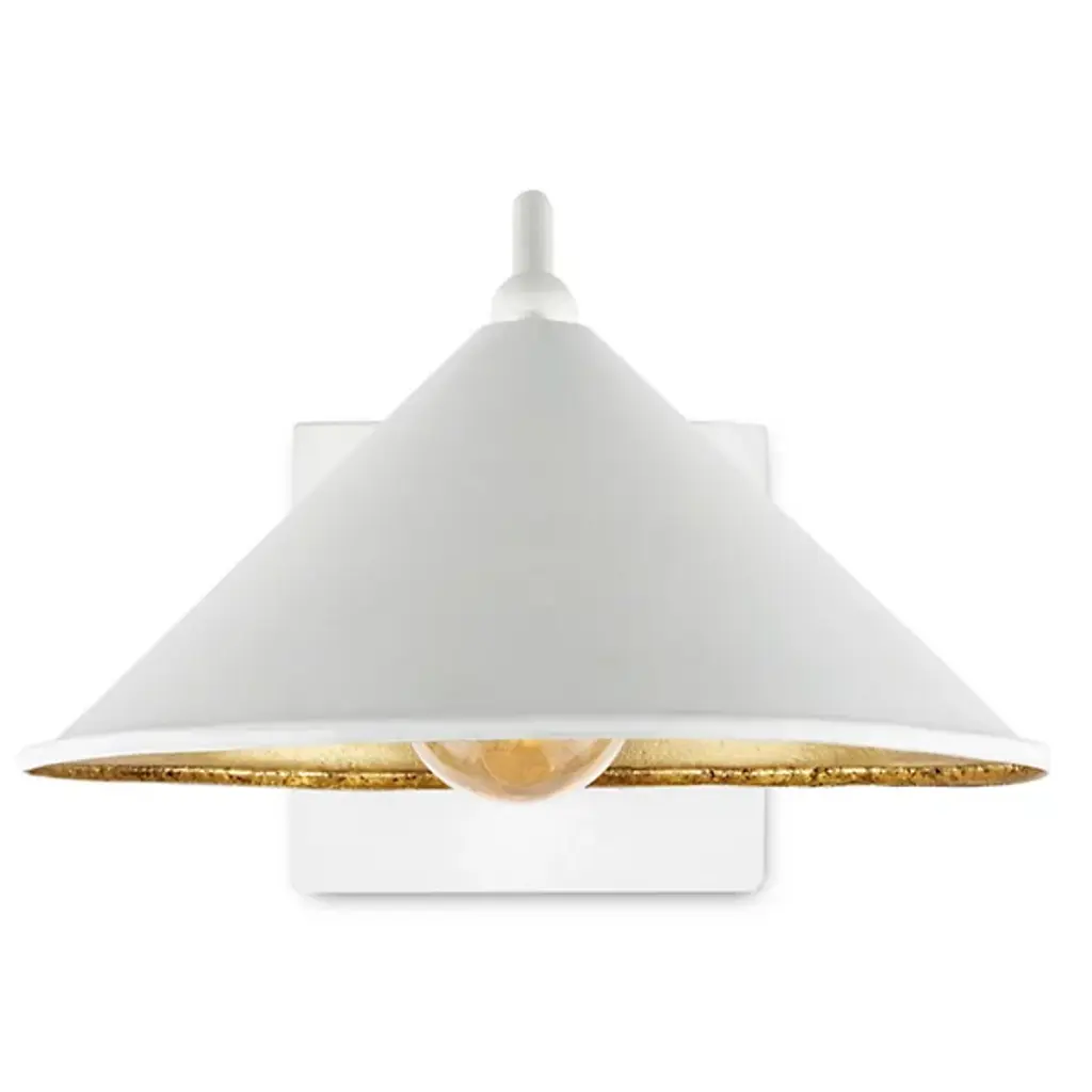 The Serpa Single White Wall Sconce is a fresh and contemporary design from Jamie Beckwith for Currey & Company. It features an understated luxury in form and texture, with a gesso white finish throughout and a contemporary gold leaf that gleams from the inside of a mid-mod-inspired shade. This fashionable piece of illumination is suitable for all interiors as well as any damp locales, like a bathroom or covered patio.