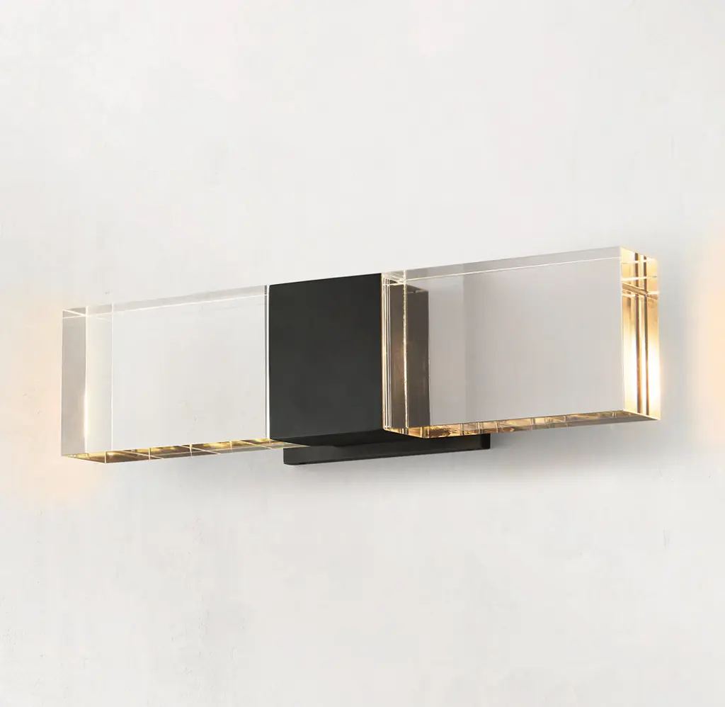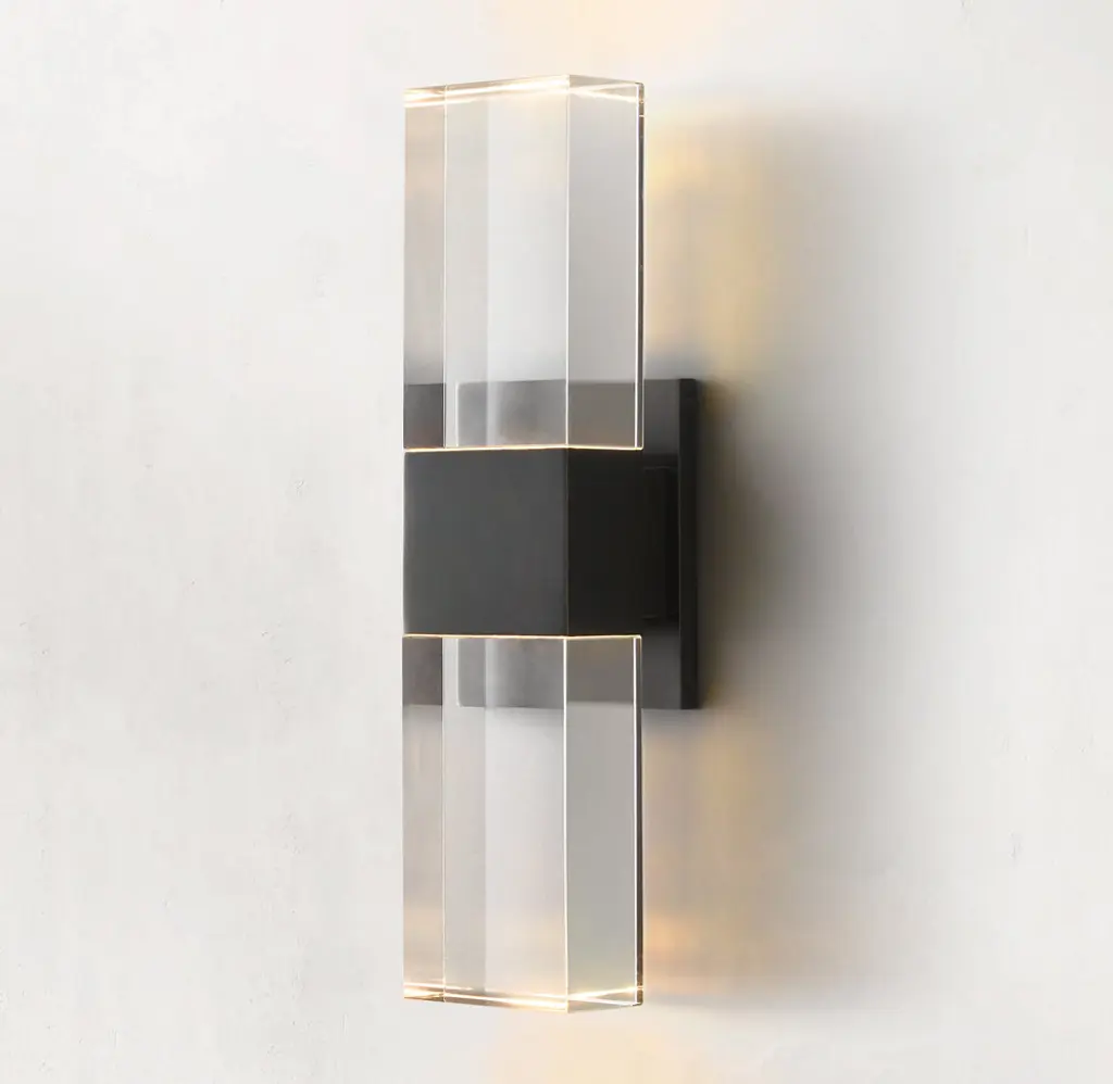 Classic architectural forms are reimagined with crisp lines and sharp angles in our collection from Ian K. Fowler. Drawing on postmodern influences, the bold, sculptural silhouette transitions seamlessly from the rectangular steel framework to a clear, solid crystal shade.