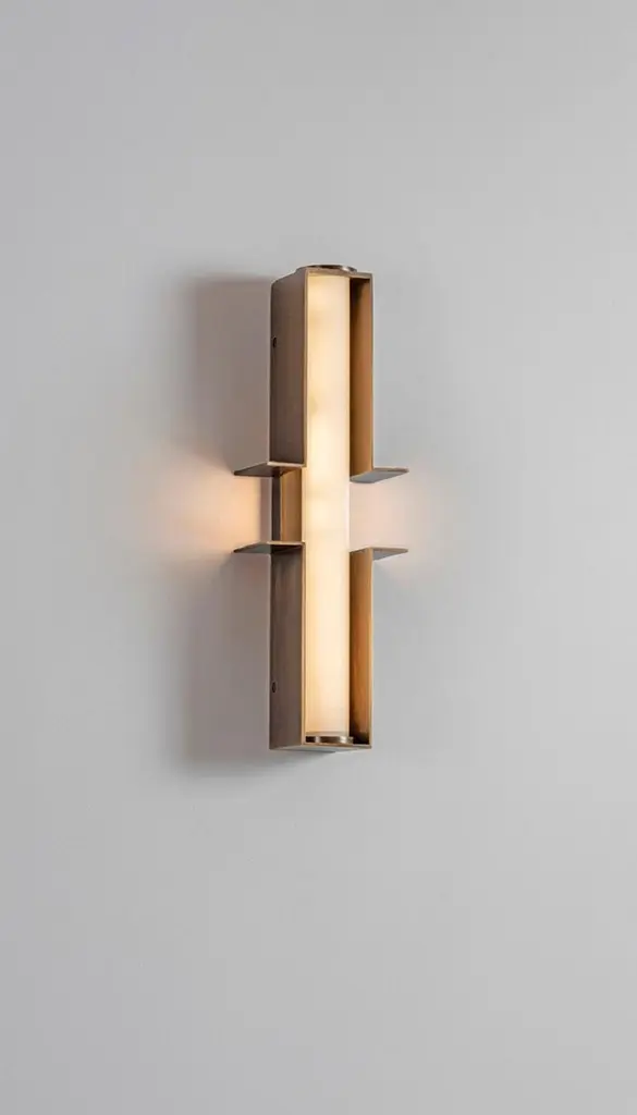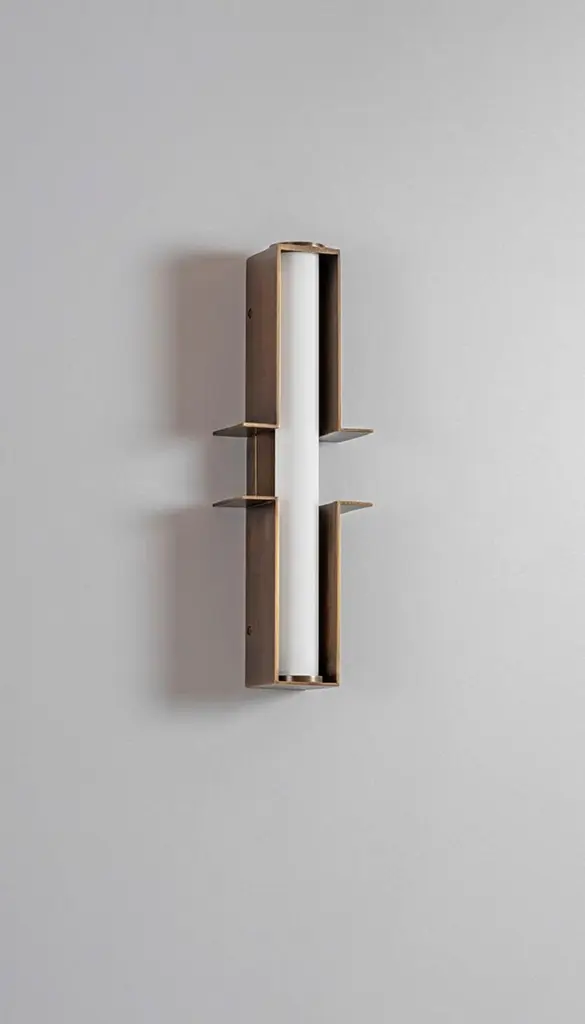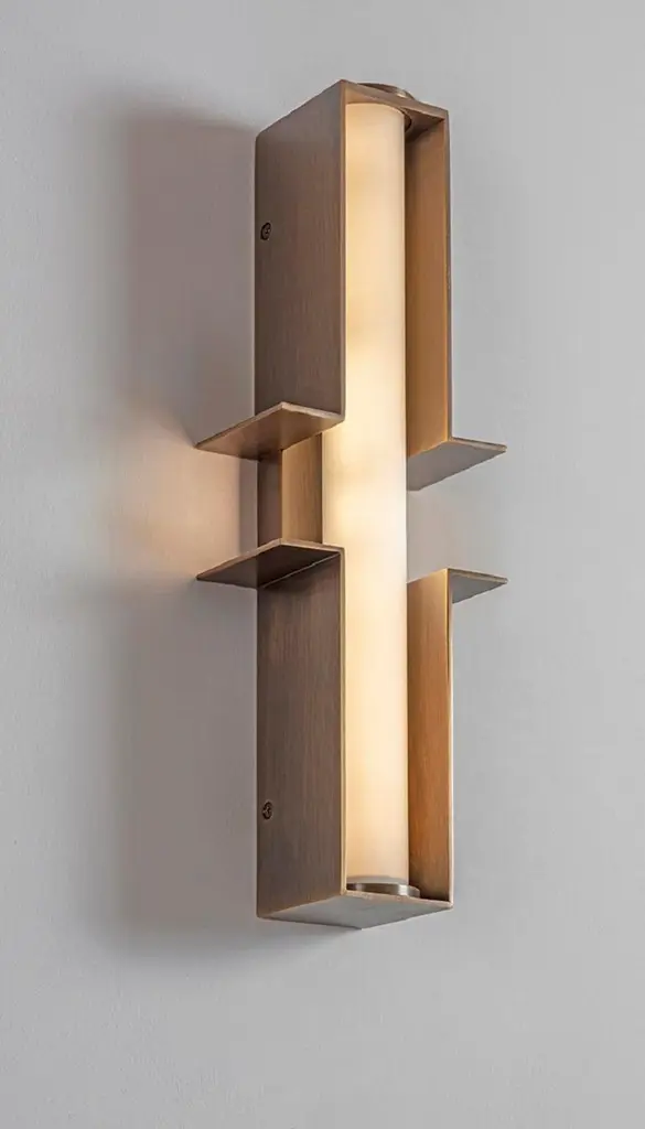 Set of 2 bronze junction wall lights by Square in CircleDimensions: W 12,5 x H 38 x D 6 cmMaterials: Dark bronze, white frosted glass tube A dark bronze wall light crafted from two parts. Each part extends to the sides, creating a minimalist geometric form. Both parts are connected via an opaque glass diffuser. Wall light is suitable for bathroom use.Square in circle is a London-based design studio founded in 2019. The studio explores lighting design in minimal, geometric forms inspired by the Modernist Era. Materials such as marble, metal and glass combine to make each sculptural piece a 'total and complete work of art', as in the manner of Gesamtkunstwerk.All our lamps can be wired according to each country. If sold to the USA it will be wired for the USA for instance.