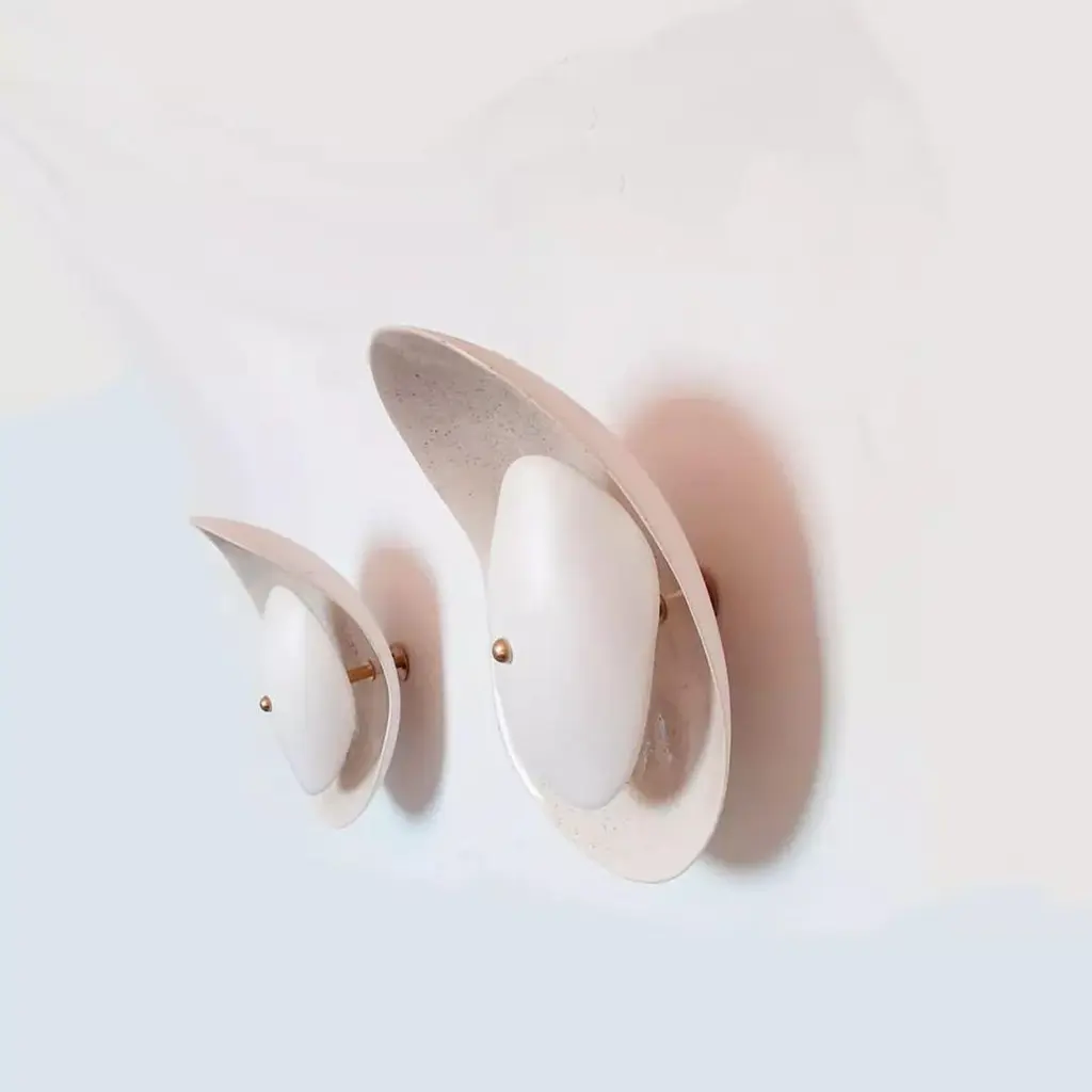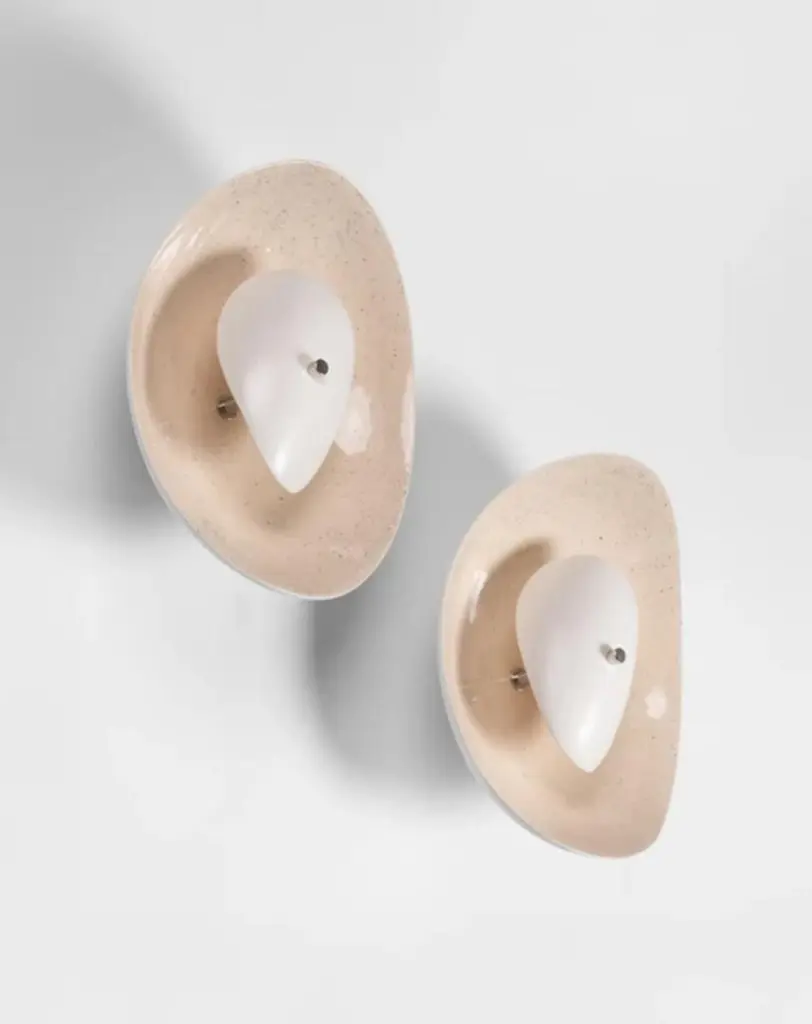 Set of 2 Hera Wall Sconces by Elsa FoulonDimensions: H 35 x W 15 cm x D 30 cmMaterials: ceramic, brassUnique pieceAlso available in different finishes.All our lamps can be wired according to each country. If sold to the USA it will be wired for the USA for instance.All of our items are handmade and may have slight variations or imperfections as the materials used can vary in color, making each piece one of a kind, and no two pieces will ever be identical. We believe this gives them their individual character and charm.Elsa Foulon, before becoming a ceramist, was born the daughter of an antique dealer and then became a dealer in 20th century decorative arts. She has always had a very personal taste, accumulating images of this century rich in creators. From this visual experience, her lighting fixtures are born as sculptures, her free and pure forms mixing her artistic and technical skills as a designer.This self-taught thirty-something loves large formats that seemed incompatible with her medium: she has now developed her own plate technique and materials that allow her to achieve her beautiful volumes while maintaining the lightness of her organic structures.Despite the skill of her processes, the mastery of her subject, what interests Elsa in the secrecy of her Parisian studio, is the beauty of the ancestral gesture: the long time between the idea and the object is always unique. The unpredictability of the fire shapes her lights. The material that these hands work with brings sensitivity to contemporary design.Finally, the light that she will hide in the hollow of her sculpture, will subtly reveal the roughness of the clay.