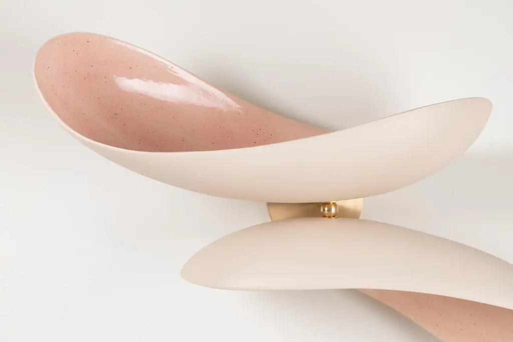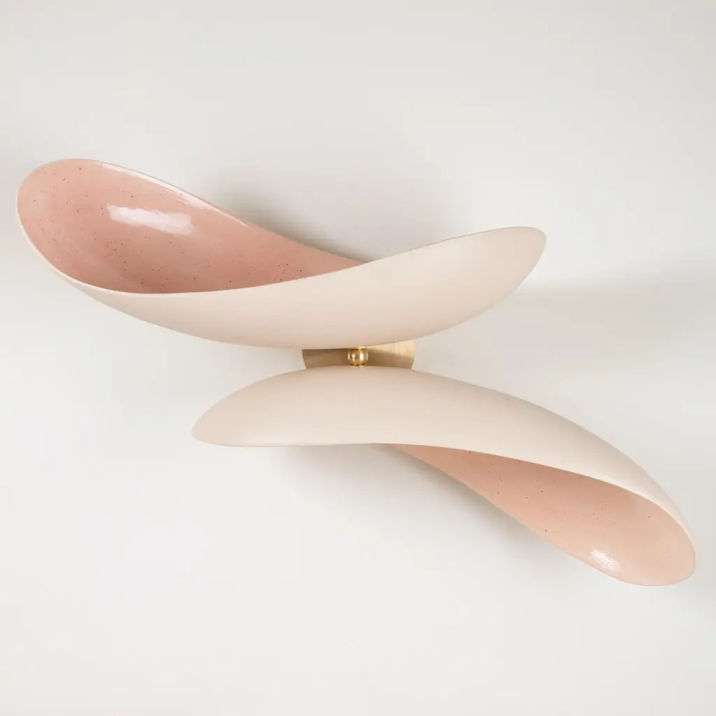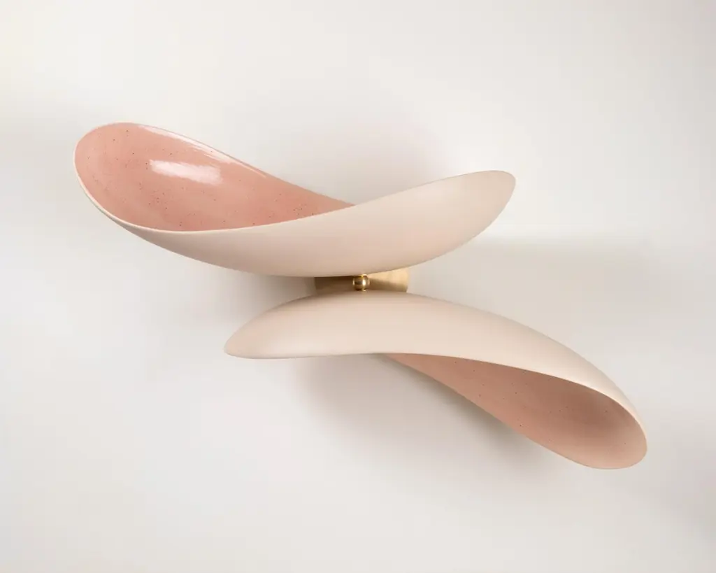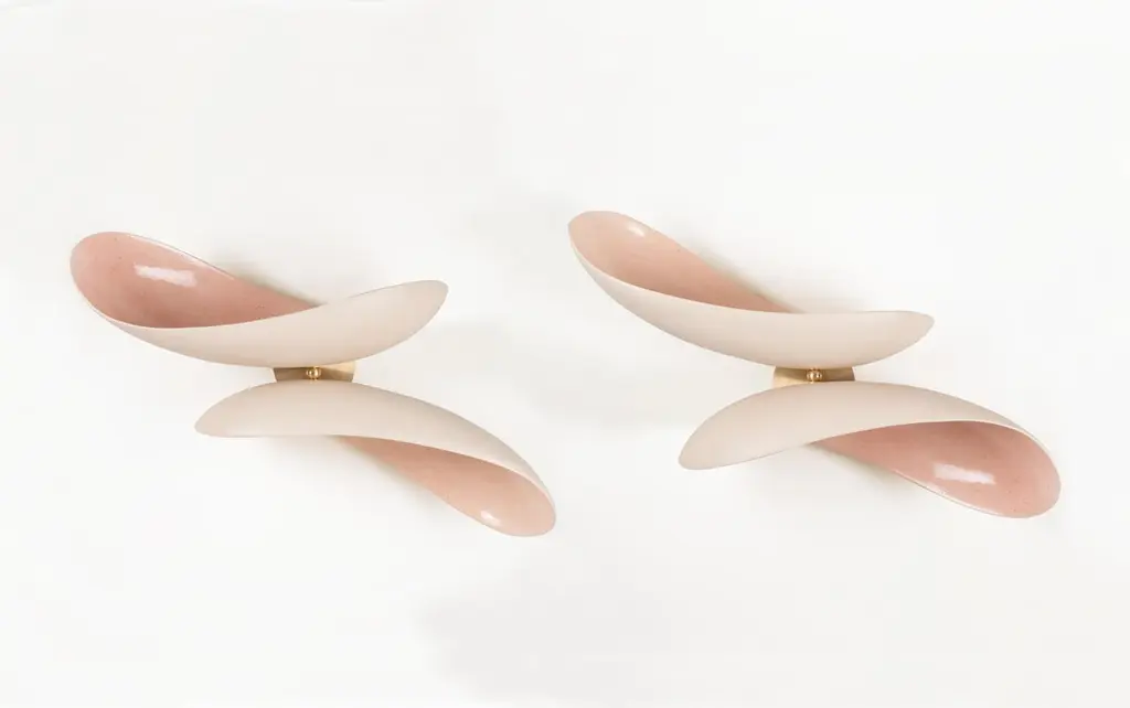 Set Of 2 Elegant Organic Curves Blush & Ivory Sculptural Sconce By Elsa Foulon