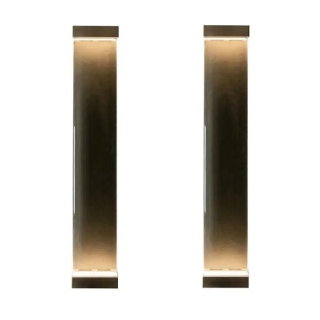 Set of 2 Jud Wall Lamps by Draga & AurelDimensions: W 23, D 10, H 131.Materials: Resin and brassAll our lamps can be wired according to each country. If sold to the USA it will be wired for the USA for instance.Inspired by minimalism, the Jud lamps are an homage to the artist Donald Judd. Made in translucent glass, different tones have been fused together to reflect a harmonious colour palette. The item is composed by a brass structure, a melted glass plate, a led lighting and a light filter in colored resin. Available in a wide range of vibrant colour variations. Handcrafted in Draga & Aurel atelier in Como, each piece is unique.Founded in 2007 in the town of Como, Italy, Draga & Aurel is a multidisciplinary design studio that works along the spectrum of furniture, textile and interior design. Draga Obradovic began her career in the fashion industry, first working in London and Milan as a textile designer before eventuallysettling in Como. Aurel K. Basedow graduated from Milan’s Accademia di Belle Arti with a degree in Fine Arts, having previously trained as a carpenter and woodworker. Thanks to their sympathetic methods, combined with an artist’s approach to material and composition Draga & Aurel are widelyrecognized for their clever reinvention of bespoke vintage design pieces.Their showing at 2009 Salone del Mobile introduced the duo to the world stage; it followed the partnerships with several companies that have pushed the pair’s domain beyond the reinvention of singular vintage pieces. While interior projects have expanded their sought after aesthetic into the realm of hospitality and lifestyle. In occasion of the 2019 Milan Design Week the design duo presented Transparency Matters, an exhibition of limited edition pieces, entirely fabricated by hand in their Como atelier.