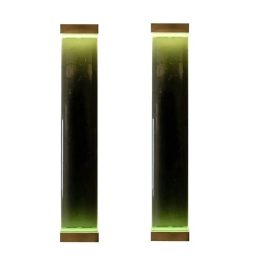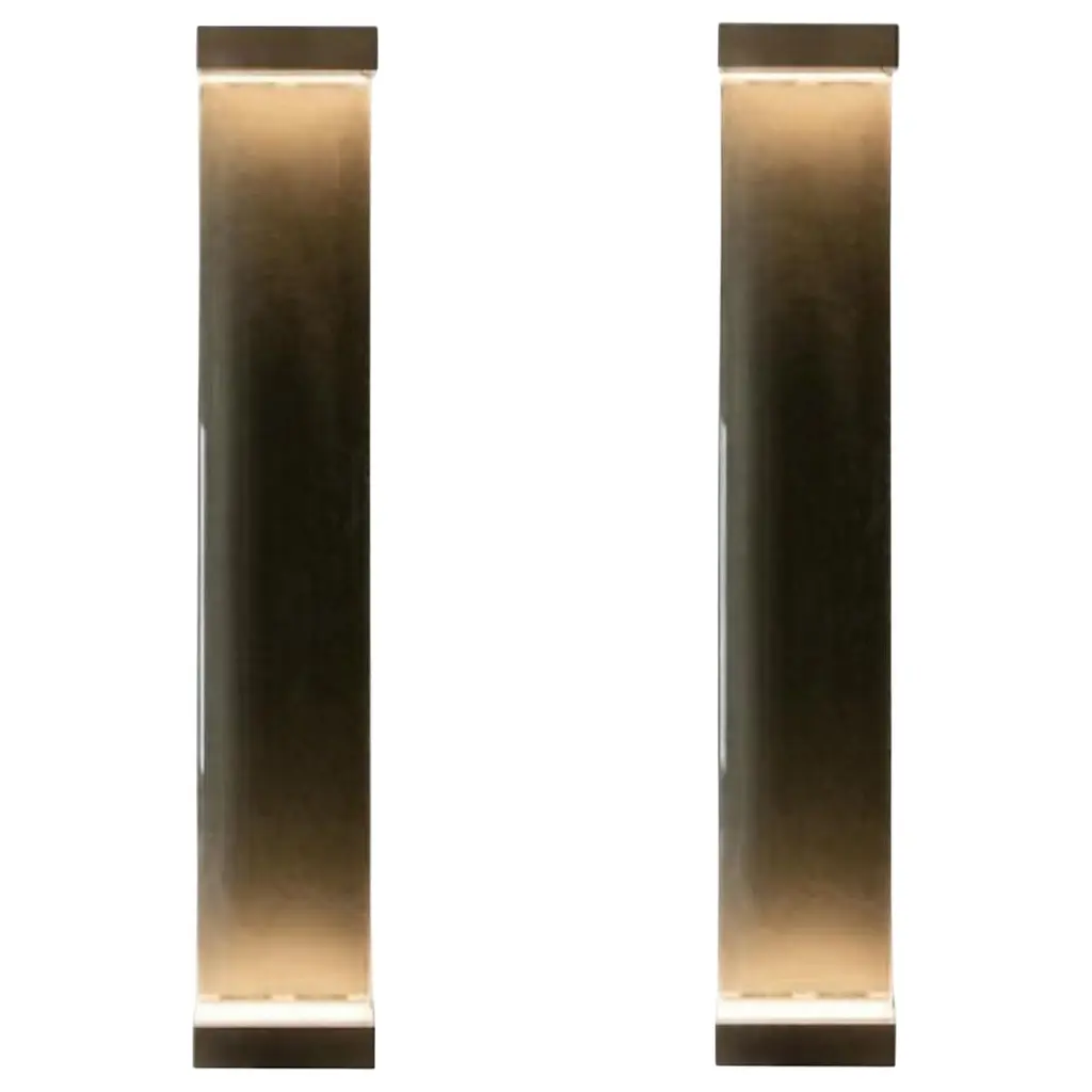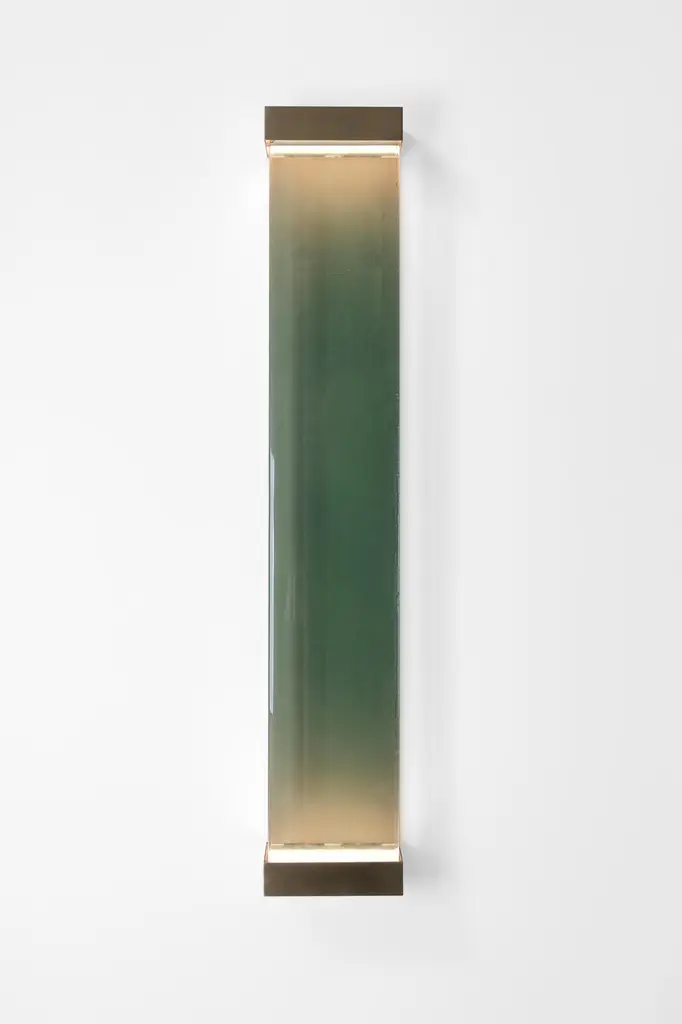 Set of 2 Jud wall lamps by Draga & AurelDimensions: W 23, D 10, H 131Materials: Resin and brassAll our lamps can be wired according to each country. If sold to the USA it will be wired for the USA for instance.Inspired by minimalism, the Jud lamps are an homage to the artist Donald Judd. Made in translucent glass, different tones have been fused together to reflect a harmonious colour palette. The item is composed by a brass structure, a melted glass plate, a led lighting and a light filter in colored resin. Available in a wide range of vibrant colour variations. Handcrafted in Draga & Aurel atelier in Como, each piece is unique.Founded in 2007 in the town of Como, Italy, Draga & Aurel is a multidisciplinary design studio that works along the spectrum of furniture, textile and interior design. Draga Obradovic began her career in the fashion industry, first working in London and Milan as a textile designer before eventuallysettling in Como. Aurel K. Basedow graduated from Milan’s Accademia di Belle Arti with a degree in Fine Arts, having previously trained as a carpenter and woodworker. Thanks to their sympathetic methods, combined with an artist’s approach to material and composition Draga & Aurel are widelyrecognized for their clever reinvention of bespoke vintage design pieces.Their showing at 2009 Salone del Mobile introduced the duo to the world stage; it followed the partnerships with several companies that have pushed the pair’s domain beyond the reinvention of singular vintage pieces. While interior projects have expanded their sought after aesthetic into the realm of hospitality and lifestyle. In occasion of the 2019 Milan Design Week the design duo presented Transparency Matters, an exhibition of limited edition pieces, entirely fabricated by hand in their Como atelier.