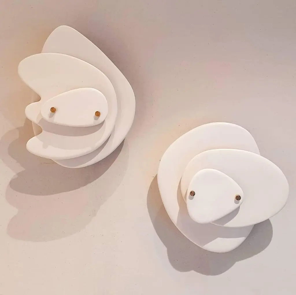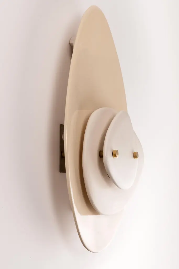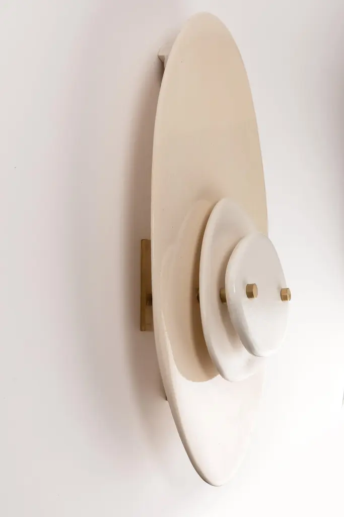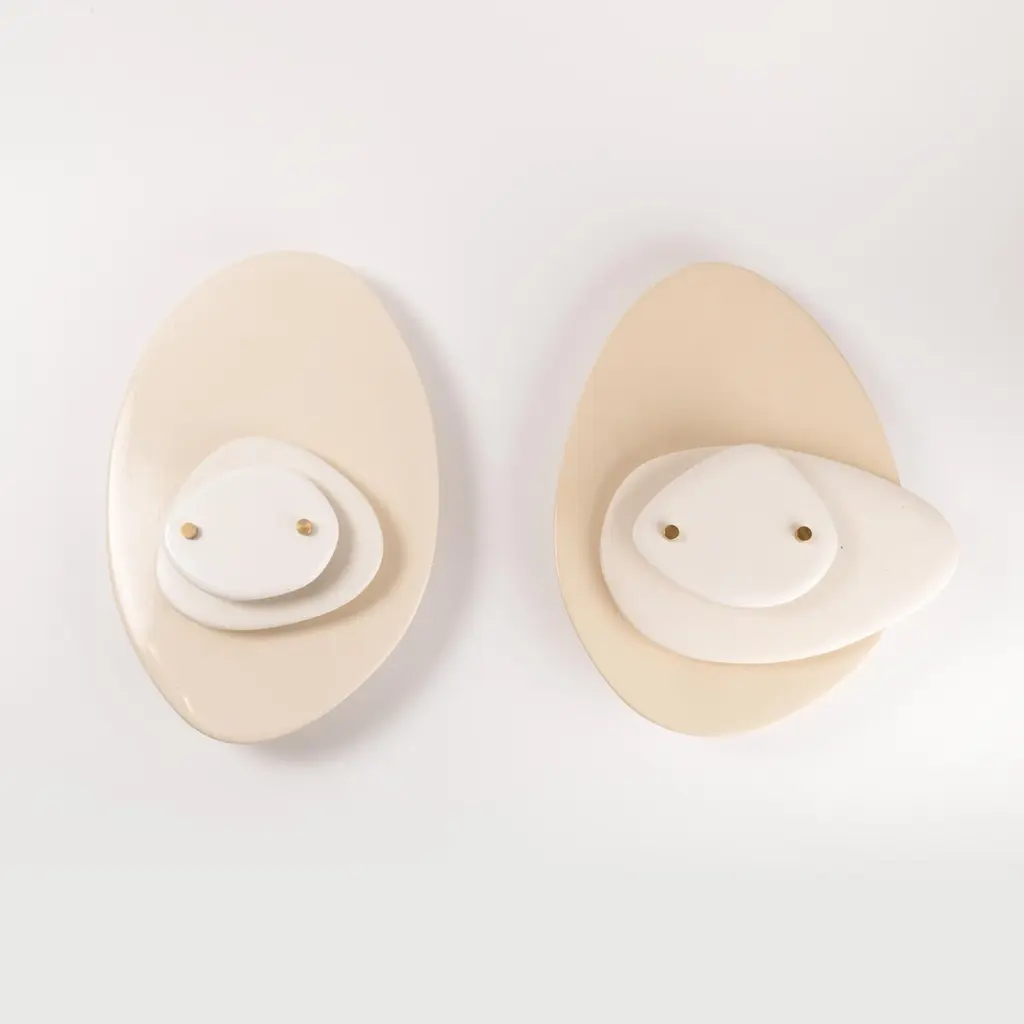 Set Of 2 Layered Off-White Ceramic Contemporary Wall Sconce By Elsa Foulon