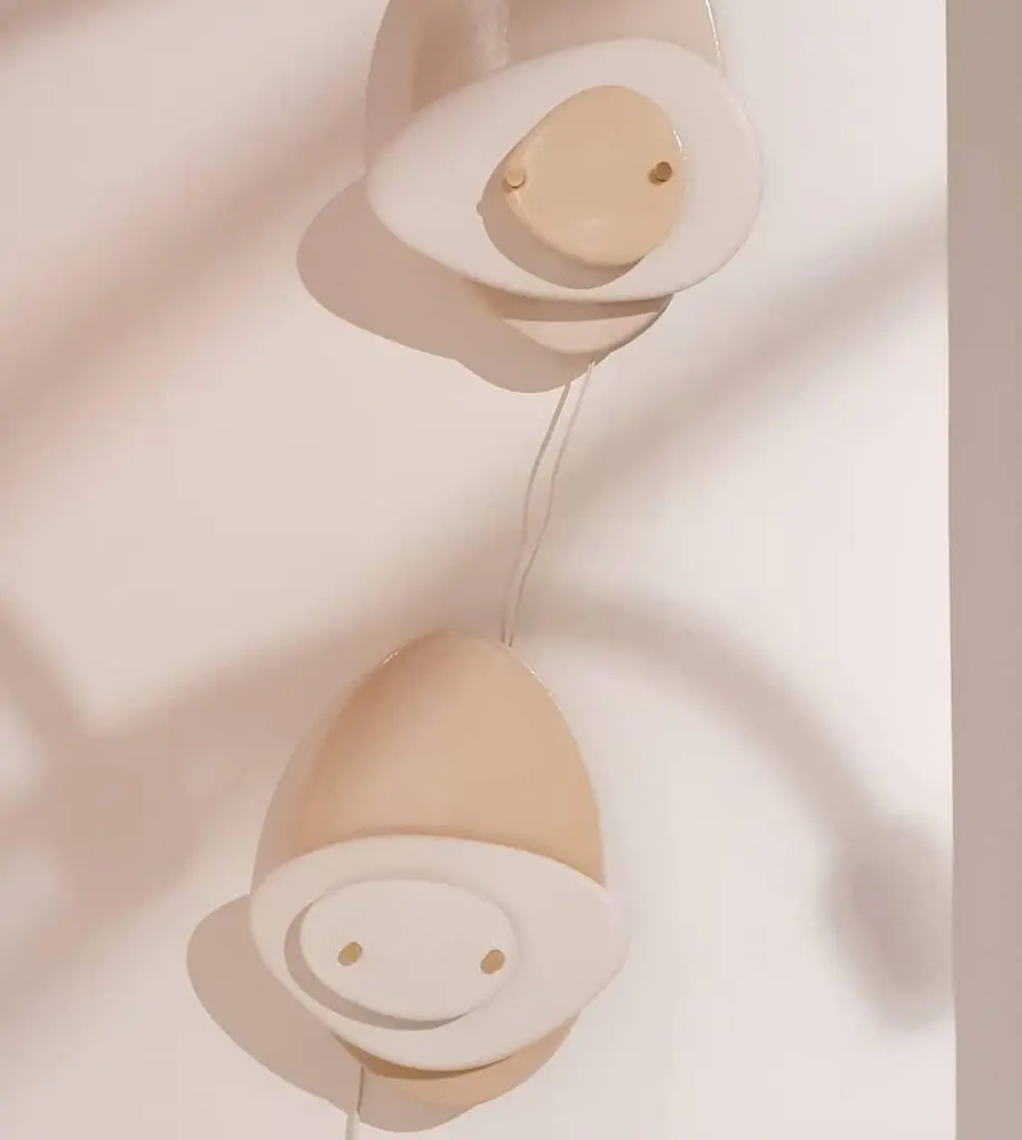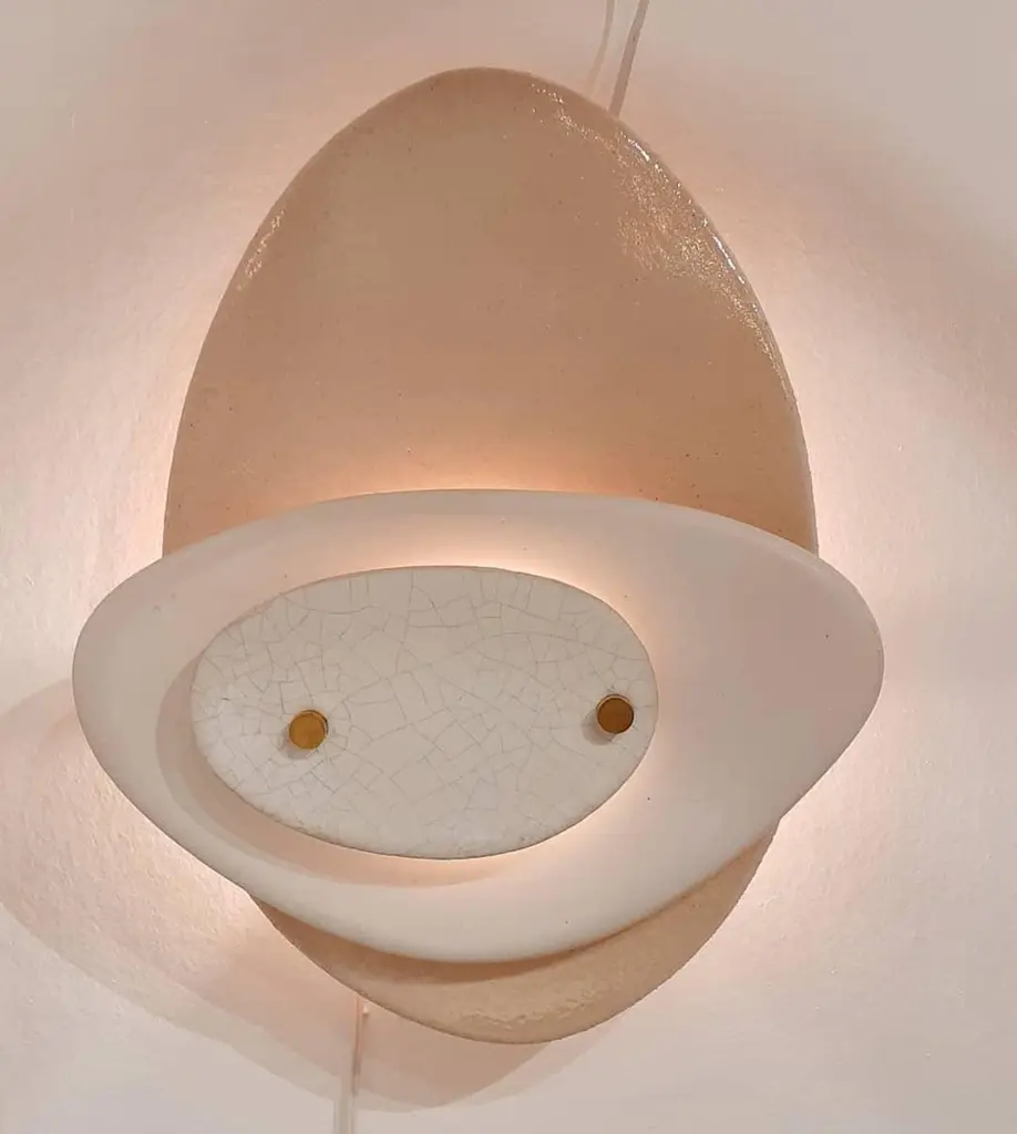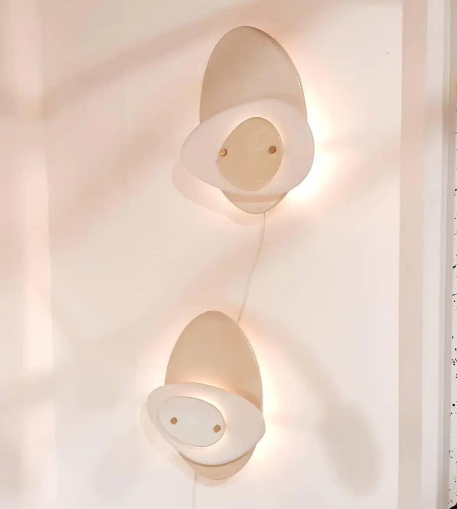Set Of 2 Layered Off-White Ceramic Contemporary Wall Sconce By Elsa Foulon