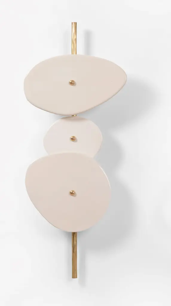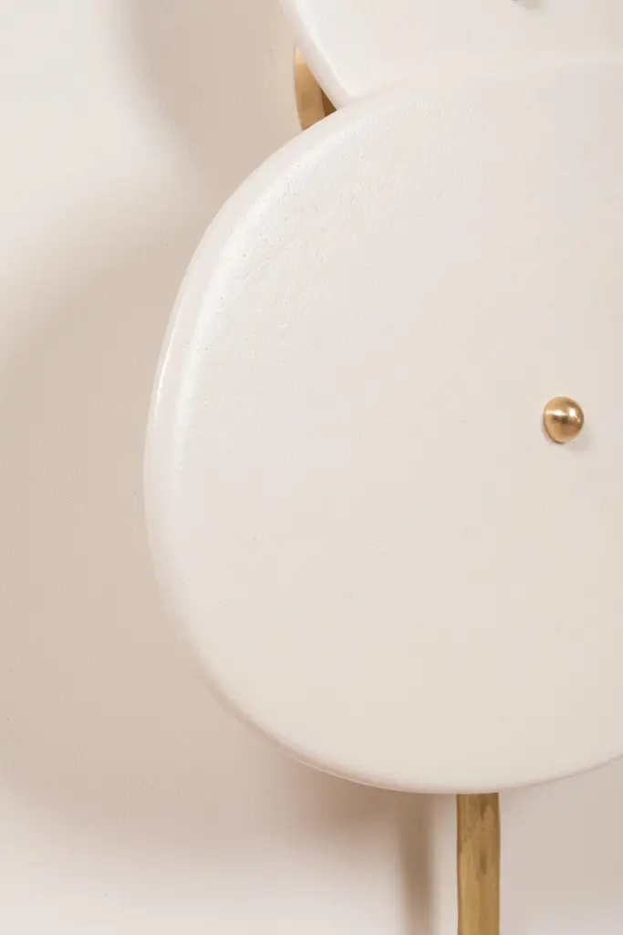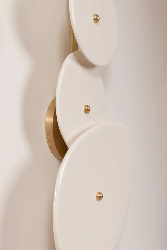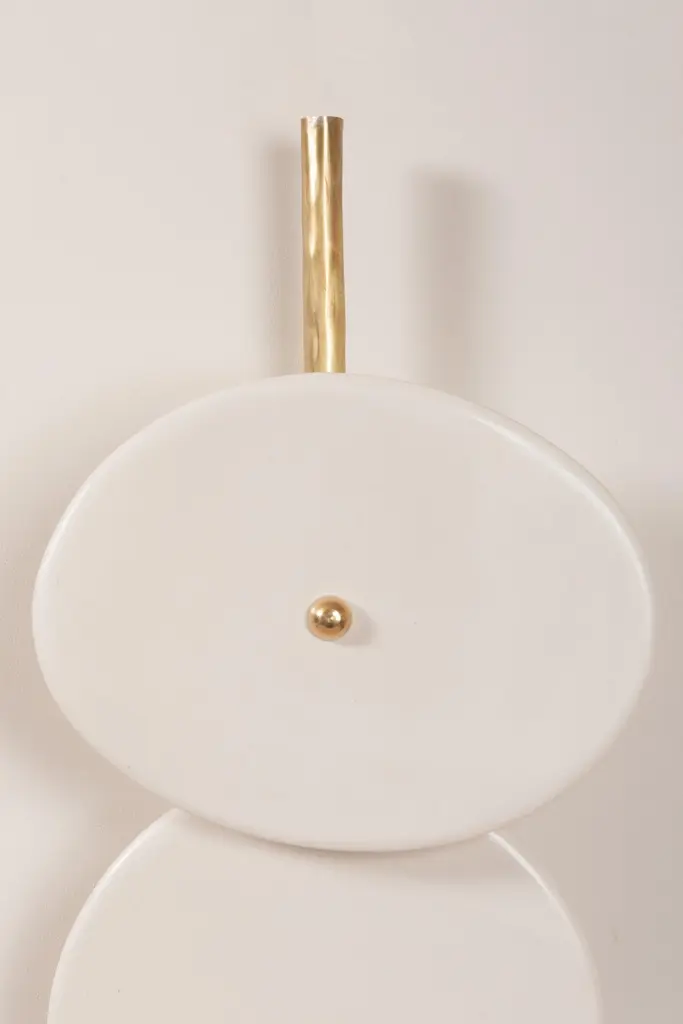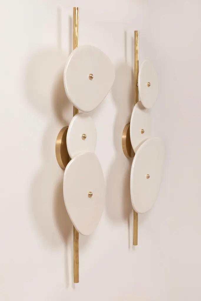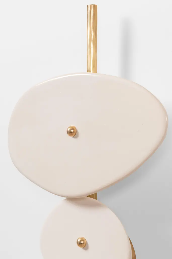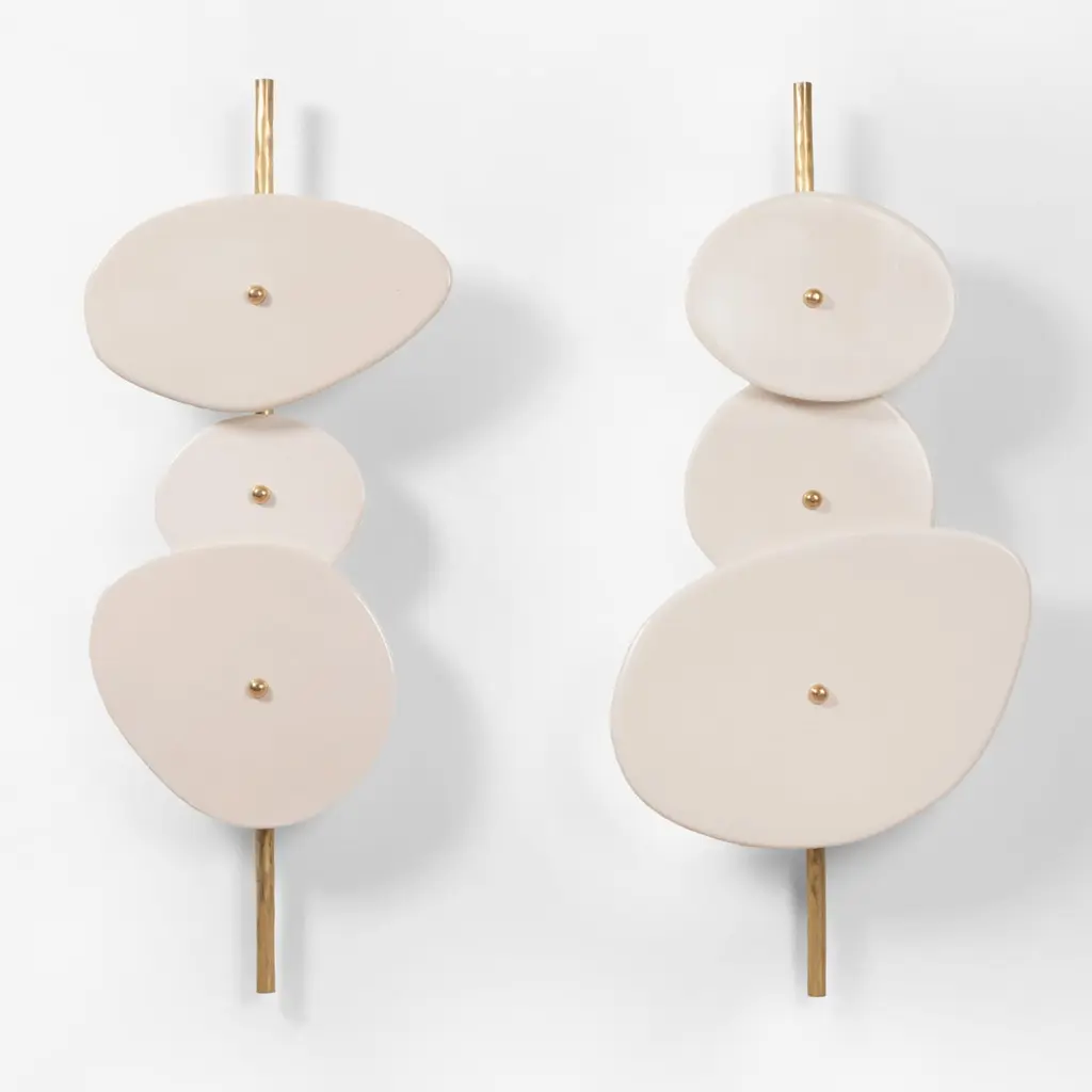 Set Of 2 Modern Brass Rod Off-White Sculptural Ceramic Wall Lamp By Elsa Foulon