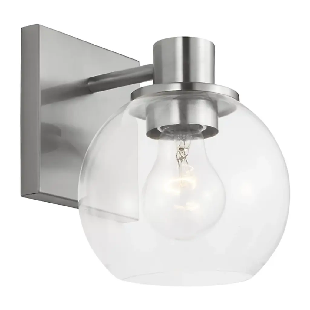 The industrial factory style Sferra wall light, made by Linea di Liara, is perfect for bathrooms, corridors, living areas and a variety of other spaces.- 4W 400 lumen LED bulb included with a 2700K color temperature and dimmable when used with compatible ELV dimmer. Medium Base E26 socket also compatible with incandescent, LED, CFL and halogen bulbs (60W max).- Handmade 6 inch diameter clear glass shade allows for maximum light output.- This Linea di Liara product is UL listed, and is backed by a 1 year limited manufacturer''s warranty