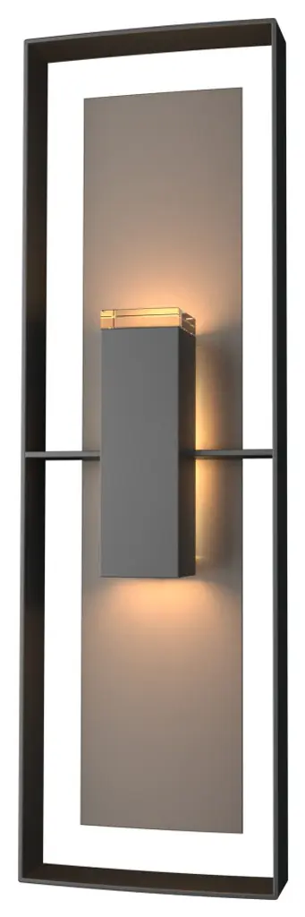 The Shadow Box Tall w/Slate Outdoor Sconce is inspired by contemporary architecture according to Designer David Martin. Its sensual minimalism is accentuated by the dramatic lighting created by its aluminum frame, offered in any of our robust AAMA 2604-rated Coastal Outdoor Finishes and Vermont black slate backplate.Features:Lifetime Limited Warranty when installed in residential settingFeatures a robust Coastal Outdoor finish specifically formulated to resist some of the harshest environmental conditions. Coastal oil rubbed bronze, coastal bronze, coastal dark smoke, and coastal burnished steel finishes are AAMA-2604 rated making these among the most durable, resistant finishes available for corrosion resistance, colorfastness, and durability. these coatings deliver exceptional hardness, scratch & mar resistance for enhanced performance in seacoast environments.ADA compliant direct wire wall sconce with finish and accent. Choose a finish for the fixture core and an accent for the backplate. Includes optical diffuser.AAMA 2604-ratedAll Hubbardton Forge Coastal Outdoor finishes are AAMA-2604 certified, meaning they are among the most durable, resistant finishes available.Handcrafted in Vermont, USARequires 2 A15 (wet location) E26 Medium Replaceable LED (120 max wattage) (Not Included)