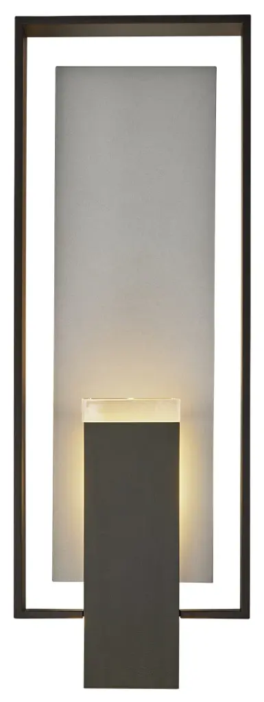 By focusing on materials and faultless geometric balance, the Shadow Box sconce proves that high-impact lighting need not be complex. Layers of diffused light and dramatic shadow create the perfect blend of style and austere lines. Each piece is accented with a block of optic crystal for an added touch of elegance. Custom backplate available. All Hubbardton Forge products are hand-crafted to last one at a time in Vermont and backed by a Lifetime Limited Warranty.Features:Lifetime Limited Warranty when installed in residential settingFeatures a robust Coastal Outdoor finish specifically formulated to resist some of the harshest environmental conditions. Coastal oil rubbed bronze, coastal bronze, coastal dark smoke, and coastal burnished steel finishes are AAMA-2604 rated making these among the most durable, resistant finishes available for corrosion resistance, colorfastness, and durability. these coatings deliver exceptional hardness, scratch & mar resistance for enhanced performance in seacoast environments.ADA compliant direct wire wall sconce with finish and accent. Choose a finish for the fixture core and an accent for the backplate. Includes optical diffuser.AAMA 2604-ratedAll Hubbardton Forge Coastal Outdoor finishes are AAMA-2604 certified, meaning they are among the most durable, resistant finishes available.Handcrafted in Vermont, USARequires 2 (1) A15 (wet location) and (1) B E26 medium Replaceable LED (120 max wattage) (Not Included)