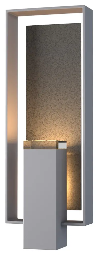 By focusing on materials and faultless geometric balance, the Shadow Box sconce proves that high-impact lighting need not be complex. Layers of diffused light and dramatic shadow create the perfect blend of style and austere lines. Each piece is accented with a block of optic crystal for an added touch of elegance. Custom backplate available. All Hubbardton Forge products are hand-crafted to last one at a time in Vermont and backed by a Lifetime Limited Warranty.Features:Lifetime Limited Warranty when installed in residential settingFeatures a robust Coastal Outdoor finish specifically formulated to resist some of the harshest environmental conditions. Coastal oil rubbed bronze, coastal bronze, coastal dark smoke, and coastal burnished steel finishes are AAMA-2604 rated making these among the most durable, resistant finishes available for corrosion resistance, colorfastness, and durability. these coatings deliver exceptional hardness, scratch & mar resistance for enhanced performance in seacoast environments.ADA compliant direct wire wall sconce with finish and accent. Choose a finish for the fixture core and an accent for the backplate. Includes optical diffuser.AAMA 2604-ratedAll Hubbardton Forge Coastal Outdoor finishes are AAMA-2604 certified, meaning they are among the most durable, resistant finishes available.Handcrafted in Vermont, USARequires 2 (1) A15 (wet location) and (1) B E26 medium Replaceable LED (120 max wattage) (Not Included)
