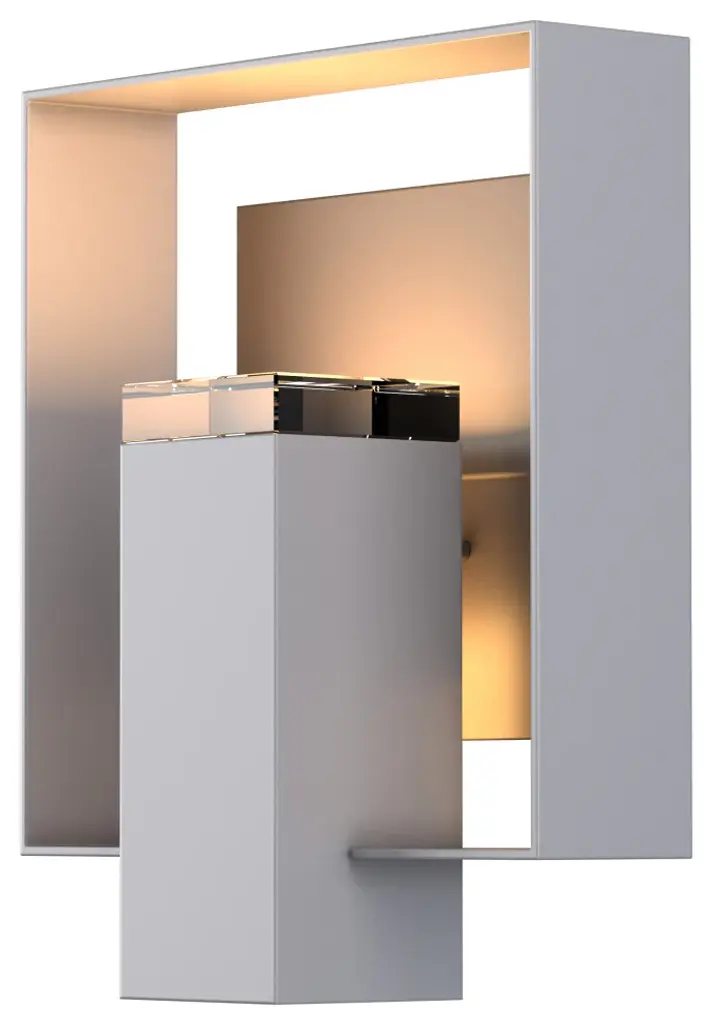 By focusing on materials and faultless geometric balance, the Shadow Box sconce proves that high-impact lighting need not be complex. Layers of diffused light and dramatic shadow create the perfect blend of style and austere lines. Each piece is accented with a block of optic crystal for an added touch of elegance. All Hubbardton Forge products are hand-crafted to last one at a time in Vermont and backed by a Lifetime Limited Warranty.Features:Lifetime Limited Warranty when installed in residential settingFeatures a robust Coastal Outdoor finish specifically formulated to resist some of the harshest environmental conditions. Coastal oil rubbed bronze, coastal bronze, coastal dark smoke, and coastal burnished steel finishes are AAMA-2604 rated making these among the most durable, resistant finishes available for corrosion resistance, colorfastness, and durability. these coatings deliver exceptional hardness, scratch & mar resistance for enhanced performance in seacoast environments.ADA compliant direct wire wall sconce with finish and accent. Choose a finish for the fixture core and an accent for the backplate. Includes optical diffuser.AAMA 2604-ratedAll Hubbardton Forge Coastal Outdoor finishes are AAMA-2604 certified, meaning they are among the most durable, resistant finishes available.Handcrafted in Vermont, USARequires 1 A15 (wet location) E26 medium Replaceable LED (60 max wattage) (Not Included)