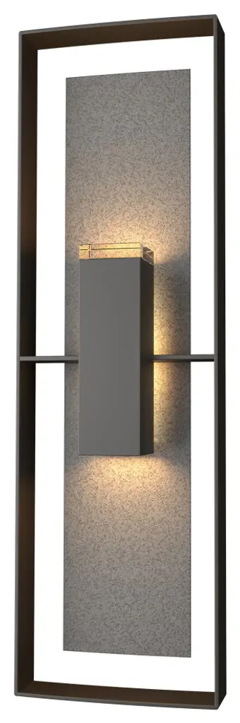 By focusing on materials and faultless geometric balance, the Shadow Box sconce proves that high-impact lighting need not be complex. Layers of diffused light and dramatic shadow create the perfect blend of style and austere lines. Each piece is accented with a block of optic crystal for an added touch of elegance. All Hubbardton Forge products are hand-crafted to last one at a time in Vermont and backed by a Lifetime Limited Warranty.Features:Lifetime Limited Warranty when installed in residential settingFeatures a robust Coastal Outdoor finish specifically formulated to resist some of the harshest environmental conditions. Coastal oil rubbed bronze, coastal bronze, coastal dark smoke, and coastal burnished steel finishes are AAMA-2604 rated making these among the most durable, resistant finishes available for corrosion resistance, colorfastness, and durability. these coatings deliver exceptional hardness, scratch & mar resistance for enhanced performance in seacoast environments.ADA compliant direct wire wall sconce with finish and accent. Choose a finish for the fixture core and an accent for the backplate. Includes optical diffuser.AAMA 2604-ratedAll Hubbardton Forge Coastal Outdoor finishes are AAMA-2604 certified, meaning they are among the most durable, resistant finishes available.Handcrafted in Vermont, USARequires 1 A15 (wet location) E26 medium Replaceable LED (60 max wattage) (Not Included)