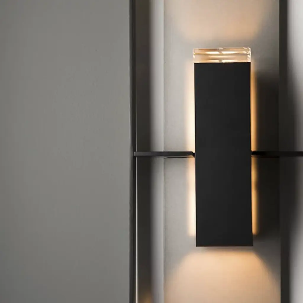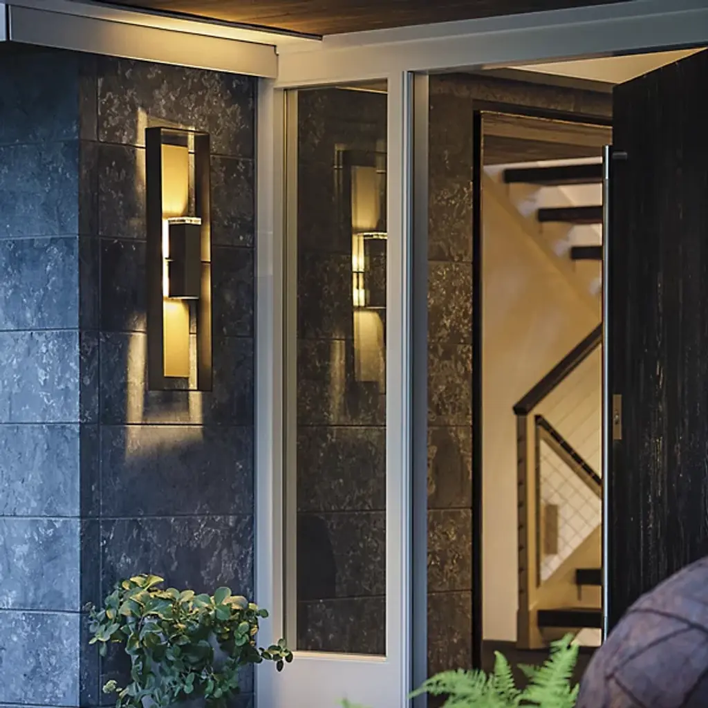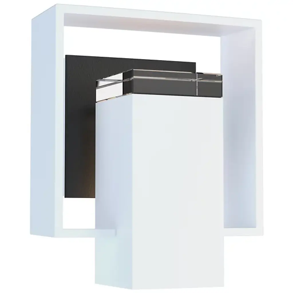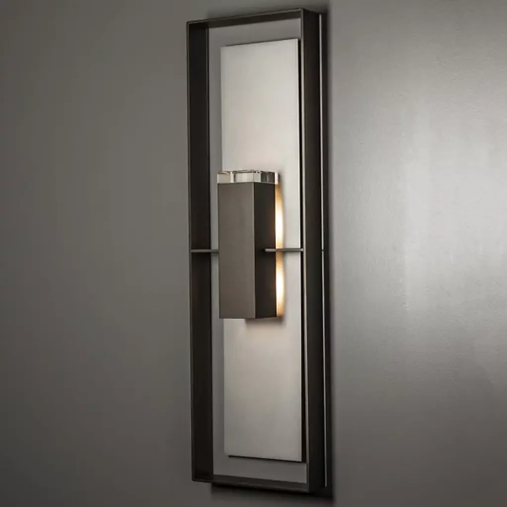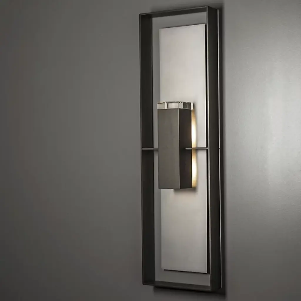 The Shadow Box Outdoor Wall Sconce by Hubbardton Forge uses clean lines and geometric form to bring a unique entry to the outdoor wall sconce arena. Light is distributed through an optical crystal diffuser to the backplate of the fixture and to the surrounding space. Dimmable with a standard incandescent dimmer (not included).