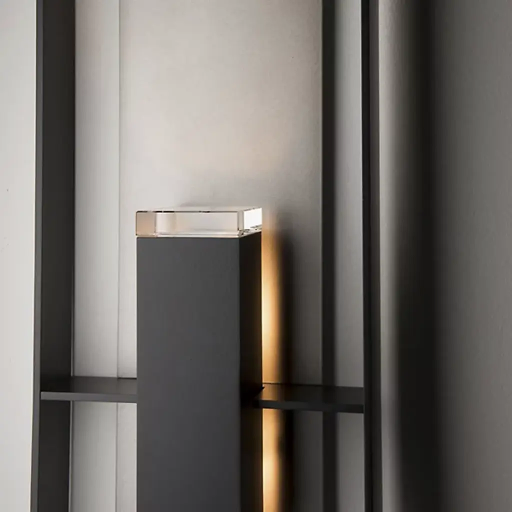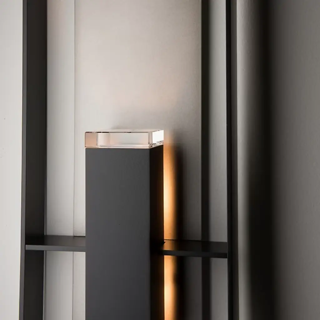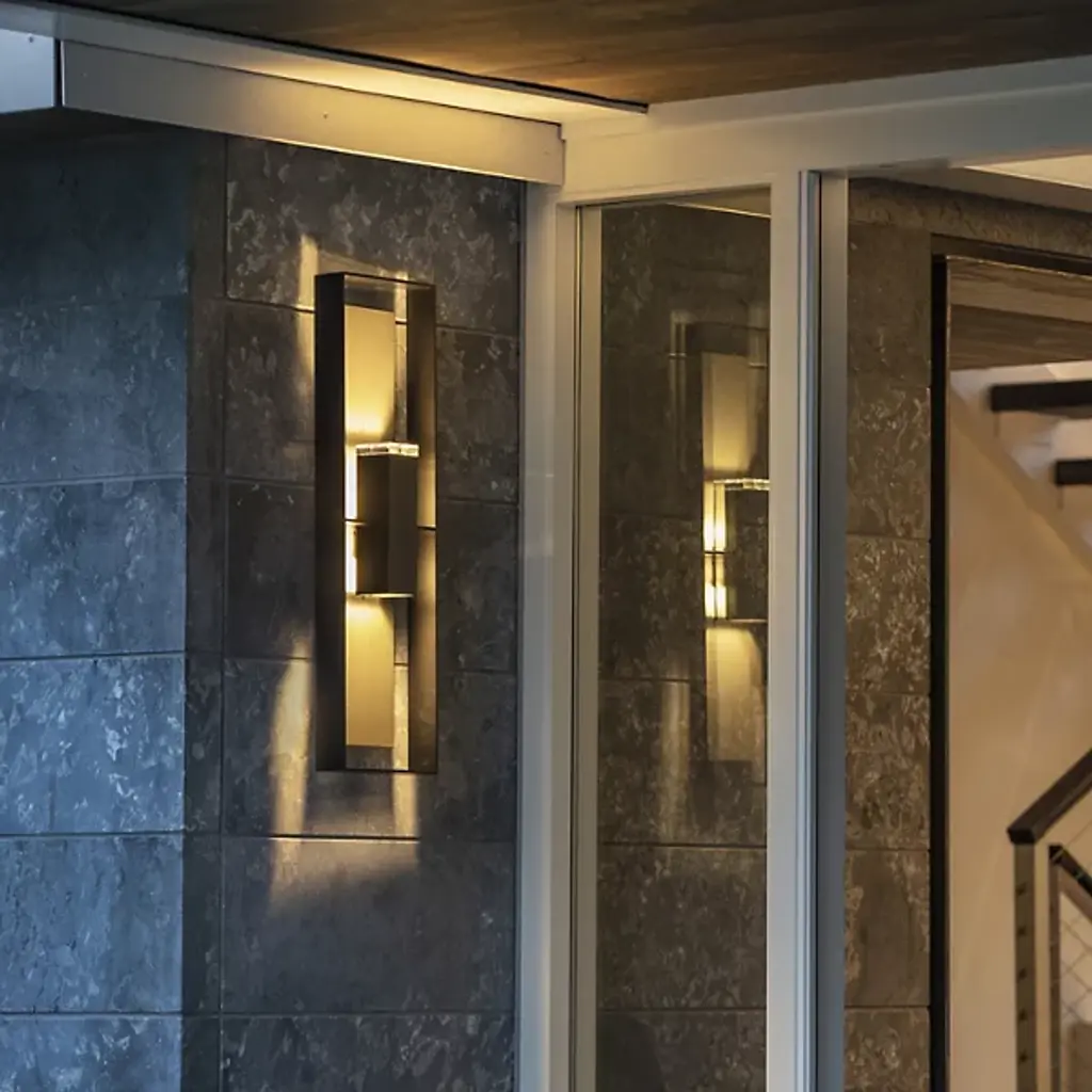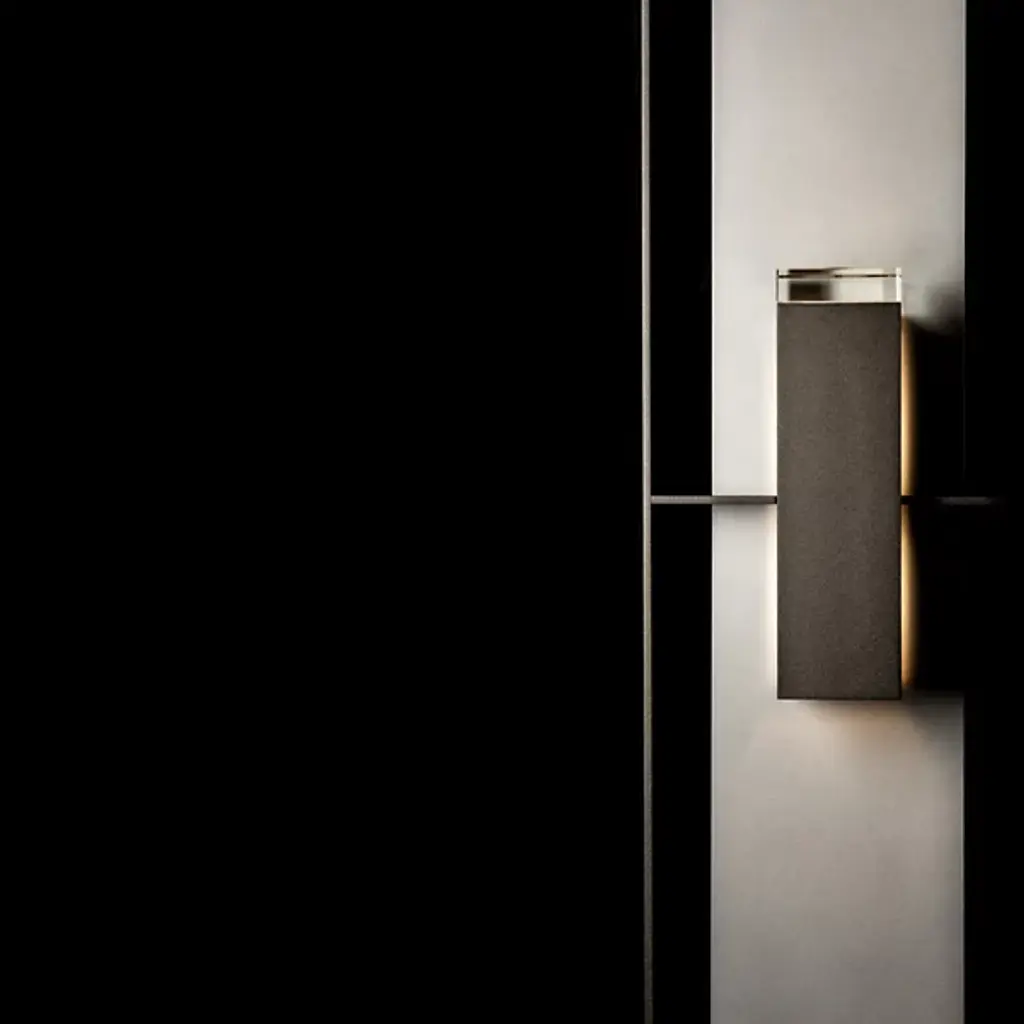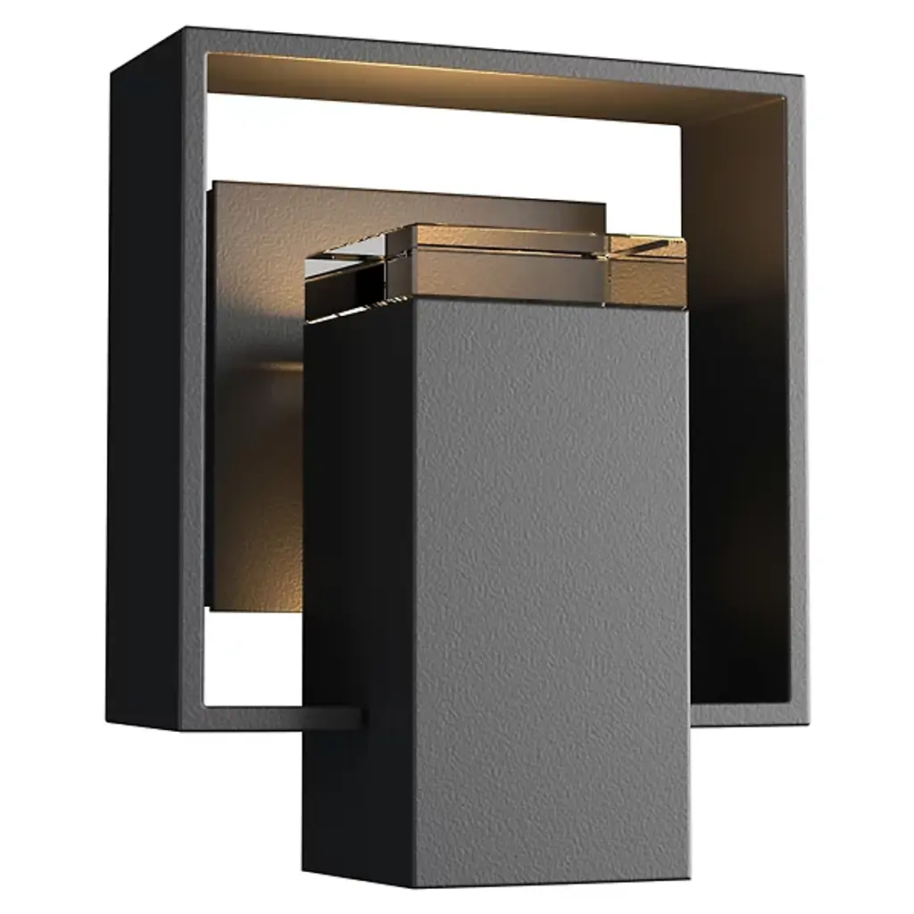 The Shadow Box Outdoor Wall Sconce by Hubbardton Forge uses clean lines and geometric form to bring a unique entry to the outdoor wall sconce arena. Light is distributed through an optical crystal diffuser to the backplate of the fixture and to the surrounding space. Dimmable with a standard incandescent dimmer (not included).