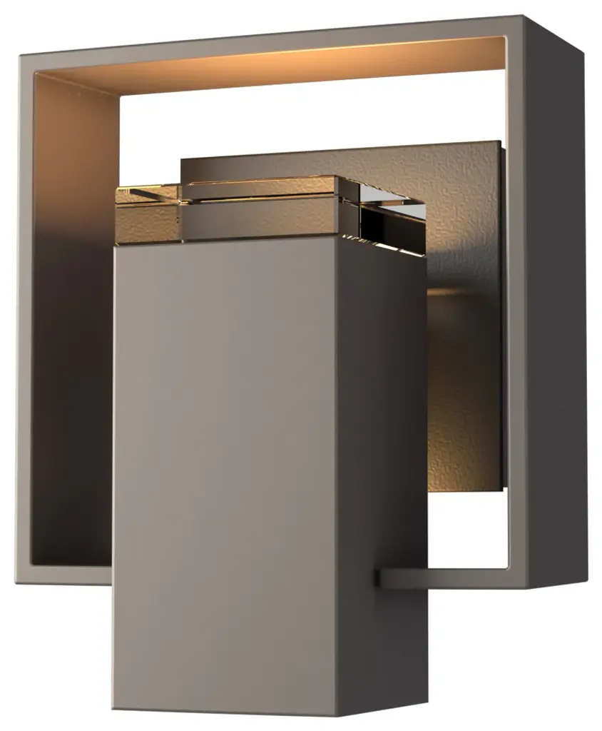 By focusing on materials and faultless geometric balance, the Shadow Box sconce proves that high-impact lighting need not be complex. Layers of diffused light and dramatic shadow create the perfect blend of style and austere lines. Each piece is accented with a block of optic crystal for an added touch of elegance. All Hubbardton Forge products are hand-crafted to last one at a time in Vermont and backed by a Lifetime Limited Warranty.Features:Lifetime Limited Warranty when installed in residential settingFeatures a robust Coastal Outdoor finish specifically formulated to resist some of the harshest environmental conditions. Coastal oil rubbed bronze, coastal bronze, coastal dark smoke, and coastal burnished steel finishes are AAMA-2604 rated making these among the most durable, resistant finishes available for corrosion resistance, colorfastness, and durability. these coatings deliver exceptional hardness, scratch & mar resistance for enhanced performance in seacoast environments.ADA compliant direct wire wall sconce with finish and accent. Choose a finish for the fixture core and an accent for the backplate. Includes optical diffuser.AAMA 2604-ratedAll Hubbardton Forge Coastal Outdoor finishes are AAMA-2604 certified, meaning they are among the most durable, resistant finishes available.Handcrafted in Vermont, USARequires 1 A15 (wet location) E26 medium Replaceable LED (60 max wattage) (Not Included)