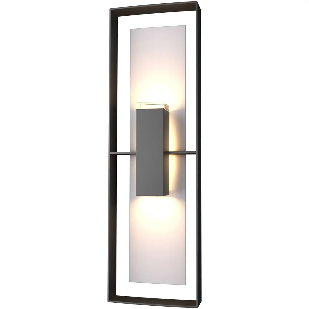 A stunning addition to the Shadow Box Outdoor Collection, the Tall version is a full 34" in height, offering both up-and-down light, and is ADA Compliant. True to its namesake, a Shadow Box is created by its aluminum frame and backplate, offered with a two-toned finish option from among HF''s robust Coastal Outdoor Collection. All Hubbardton Forge products are hand-crafted to last one at a time in Vermont and backed by a Lifetime Limited Warranty.Features:Lifetime Limited Warranty when installed in residential settingFeatures a robust Coastal Outdoor finish specifically formulated to resist some of the harshest environmental conditions. Coastal oil rubbed bronze, coastal bronze, coastal dark smoke, and coastal burnished steel finishes are AAMA-2604 rated making these among the most durable, resistant finishes available for corrosion resistance, colorfastness, and durability. these coatings deliver exceptional hardness, scratch & mar resistance for enhanced performance in seacoast environments.ADA compliant direct wire wall sconce with finish and accent. Choose a finish for the fixture core and an accent for the backplate. Includes optical diffuser.AAMA 2604-ratedAll Hubbardton Forge Coastal Outdoor finishes are AAMA-2604 certified, meaning they are among the most durable, resistant finishes available.Handcrafted in Vermont, USARequires 2 (1) A15 (wet location) and (1) B E26 medium Replaceable LED (120 max wattage) (Not Included)