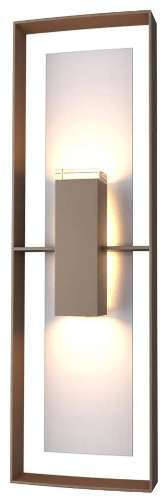 A stunning addition to the Shadow Box Outdoor Collection, the Tall version is a full 34" in height, offering both up-and-down light, and is ADA Compliant. True to its namesake, a Shadow Box is created by its aluminum frame and backplate, offered with a two-toned finish option from among HF''s robust Coastal Outdoor Collection. All Hubbardton Forge products are hand-crafted to last one at a time in Vermont and backed by a Lifetime Limited Warranty.Features:Lifetime Limited Warranty when installed in residential settingFeatures a robust Coastal Outdoor finish specifically formulated to resist some of the harshest environmental conditions. Coastal oil rubbed bronze, coastal bronze, coastal dark smoke, and coastal burnished steel finishes are AAMA-2604 rated making these among the most durable, resistant finishes available for corrosion resistance, colorfastness, and durability. these coatings deliver exceptional hardness, scratch & mar resistance for enhanced performance in seacoast environments.ADA compliant direct wire wall sconce with finish and accent. Choose a finish for the fixture core and an accent for the backplate. Includes optical diffuser.AAMA 2604-ratedAll Hubbardton Forge Coastal Outdoor finishes are AAMA-2604 certified, meaning they are among the most durable, resistant finishes available.Handcrafted in Vermont, USARequires 2 (1) A15 (wet location) and (1) B E26 medium Replaceable LED (120 max wattage) (Not Included)