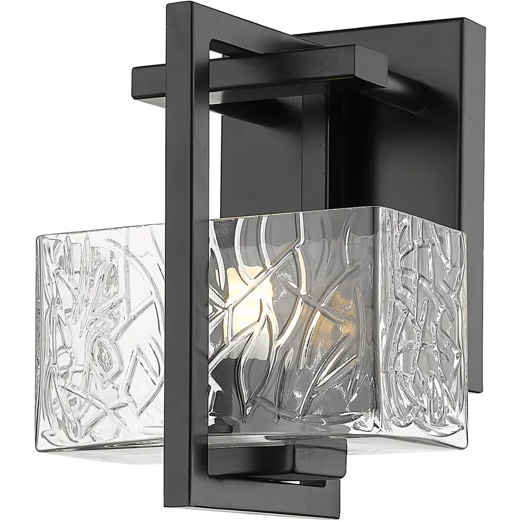 Dramatic lighting with an artistic flair. The Shard Small LED Outdoor Wall Sconce by Hubbardton Forge is highlighted with a thick hand-poured clear glass block that features colored shard inserts. This handcrafted design is placed on a geometrical back panel made of aluminum. A geometrical enclosure at the top houses an LED light that reflects the glow on the shards and back paneling. Install it on patio, backyard, or porch walls to infuse contemporary style and enhance the visual appeal.