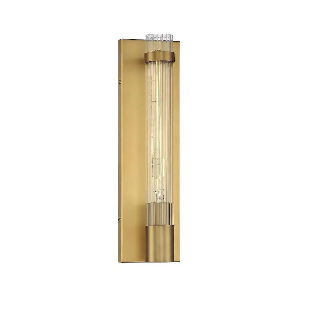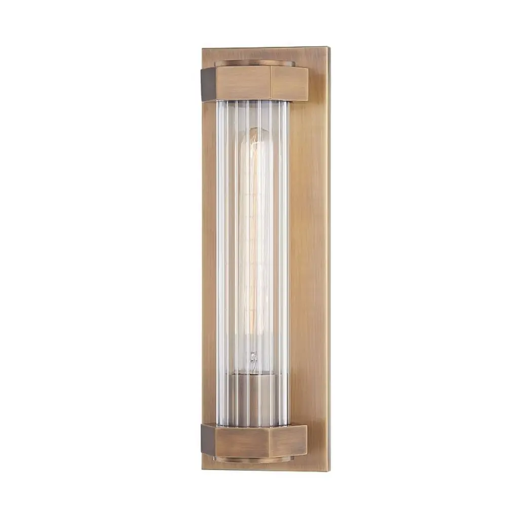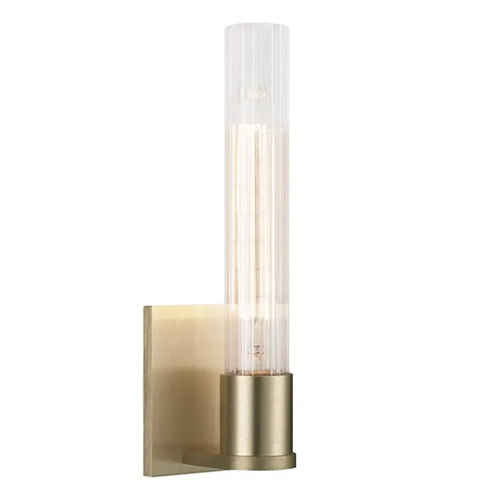 The Hudson Valley Shaw LED Wall Sconce takes a classical aesthetic and combines it with a modern energy efficient light source. The ribbed glass shade is held in place with metal hardware, which gives the piece a dose of contrast and variety. The socket features a mechanical-inspired texture, adding a subtle machine-age aesthetic to this minimal piece. A contemporary update to a classic form, this wall light will illuminate your space with a classy vibe.