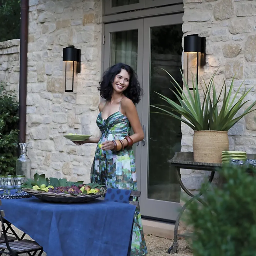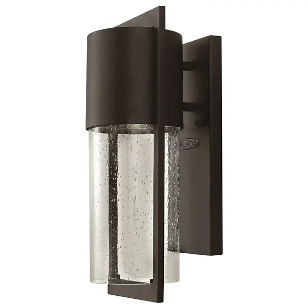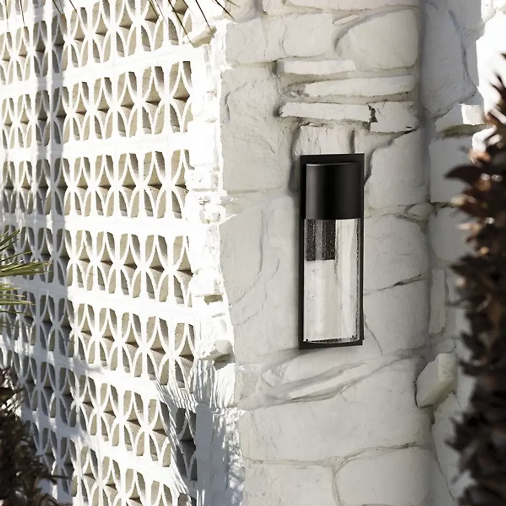 As its name would suggest, the Shelter Outdoor Wall Sconce by Hinkley Lighting provides exterior living spaces with ample amounts of warm, comforting light. The fixture easily puts you at ease with not just its distinctive, encompassing lighting aura, but its minimalist and ultra-contemporary form factor. The fixture is built with a clear seed glass built into a dramatic cylindrical-like shape. To add durability to the piece is a solid aluminum framework that allows the piece the best in resistance to whatever mother nature throws its way.