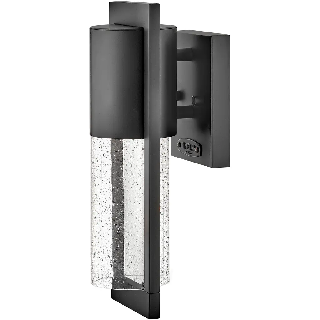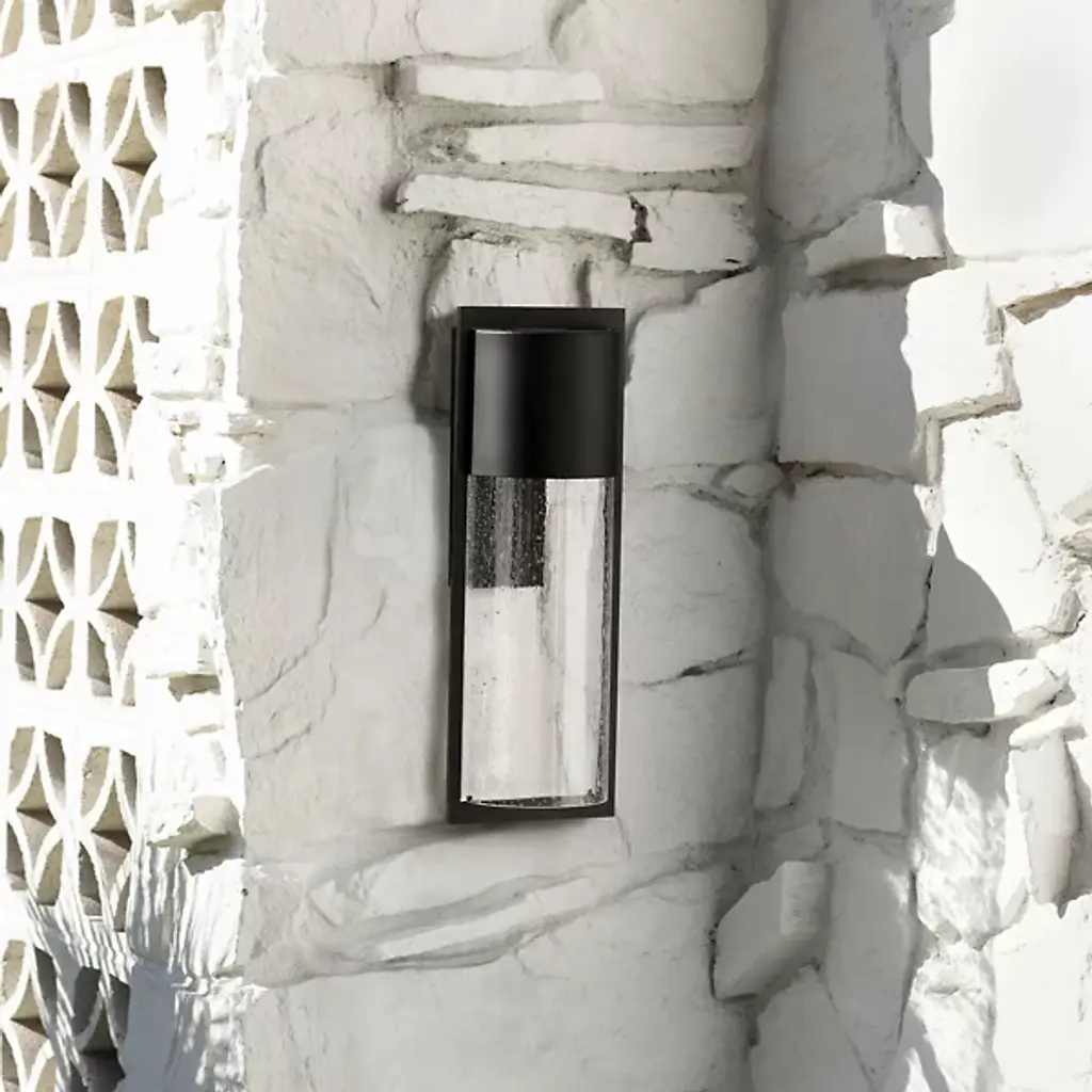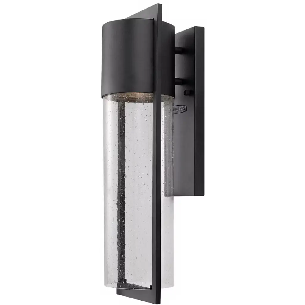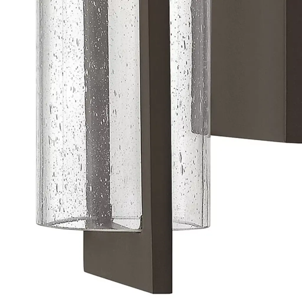 As its name would suggest, the Shelter Outdoor Wall Sconce by Hinkley Lighting provides exterior living spaces with ample amounts of warm, comforting light. The fixture easily puts you at ease with not just its distinctive, encompassing lighting aura, but its minimalist and ultra-contemporary form factor. The fixture is built with a clear seed glass built into a dramatic cylindrical-like shape. To add durability to the piece is a solid aluminum framework that allows the piece the best in resistance to whatever mother nature throws its way.