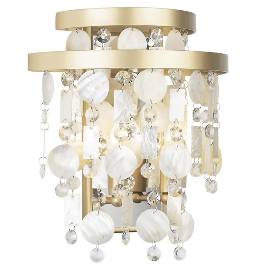 The Shimmering Elegance 2 Light Wall Sconce from Minka-Lavery brings a luxurious, refined touch to any room with its exquisite transitional style. Crafted from durable steel, this sconce is embellished with quartz crystalline pieces and cut glass beads, creating a mesmerizing shimmer as light filters through its textured shade. Ideal for enhancing dining rooms or entryways, it combines timeless elegance with a modern edge, serving as a sophisticated focal point that elevates any decor with radiant charm.