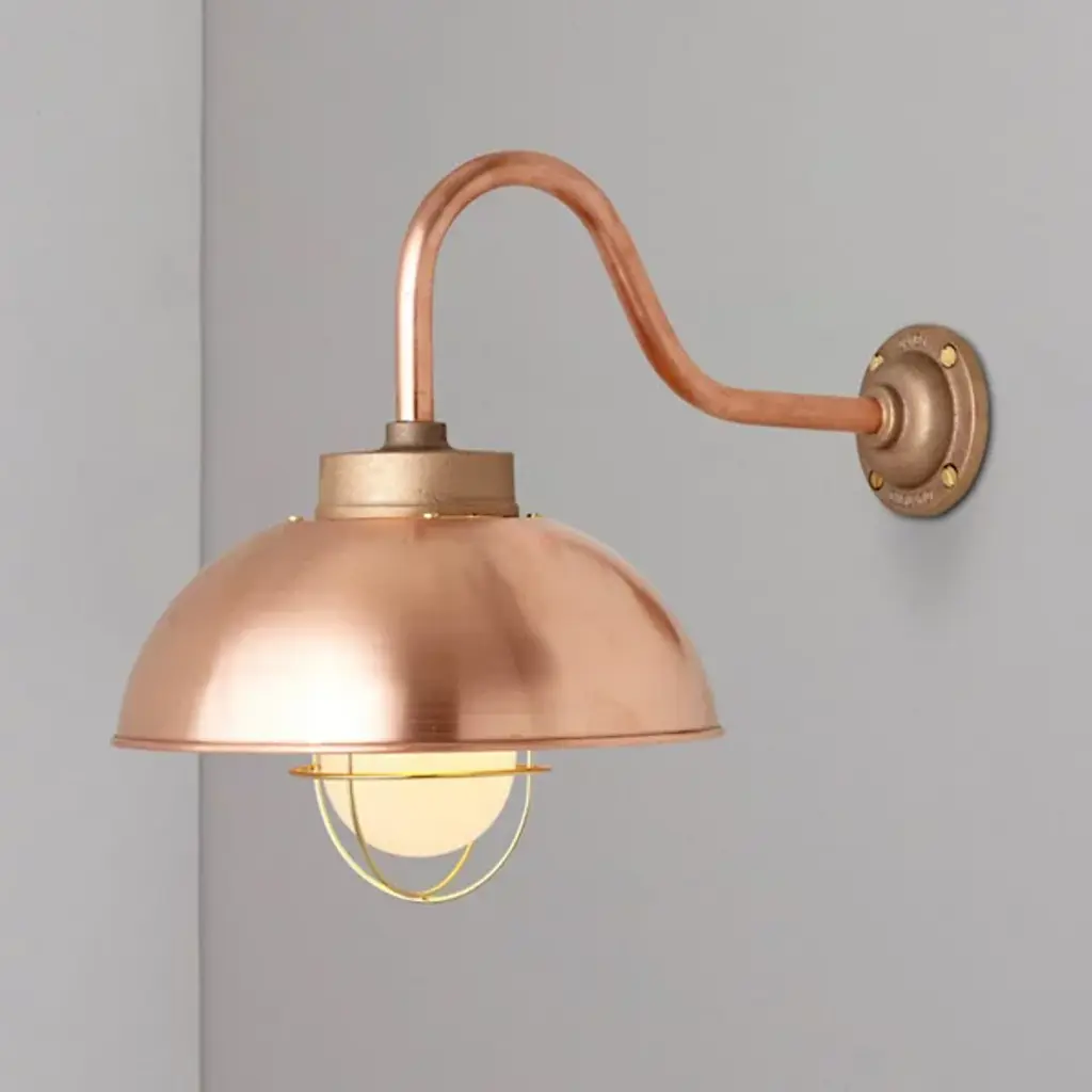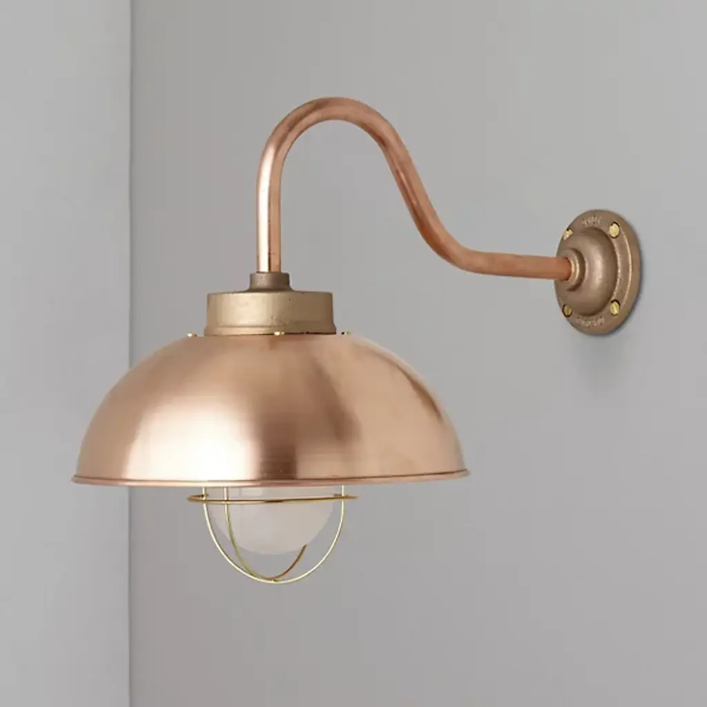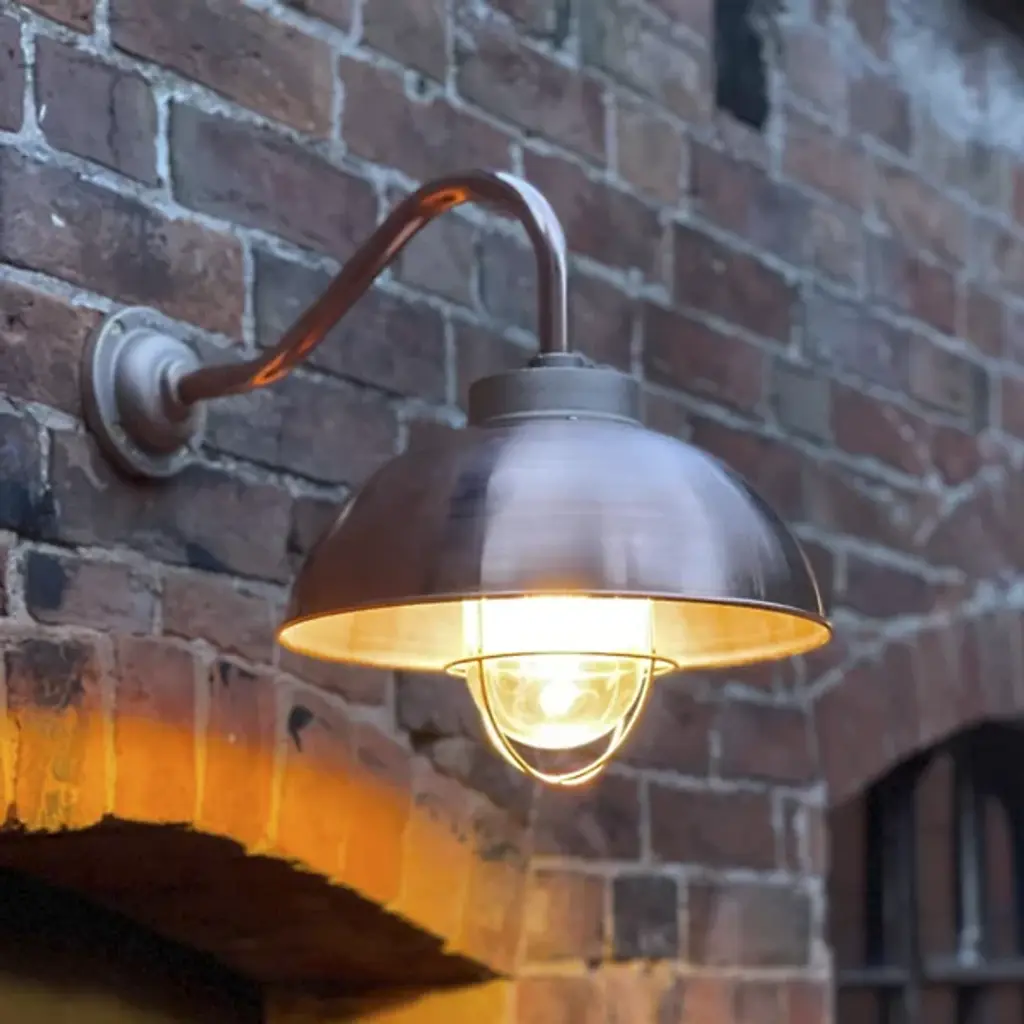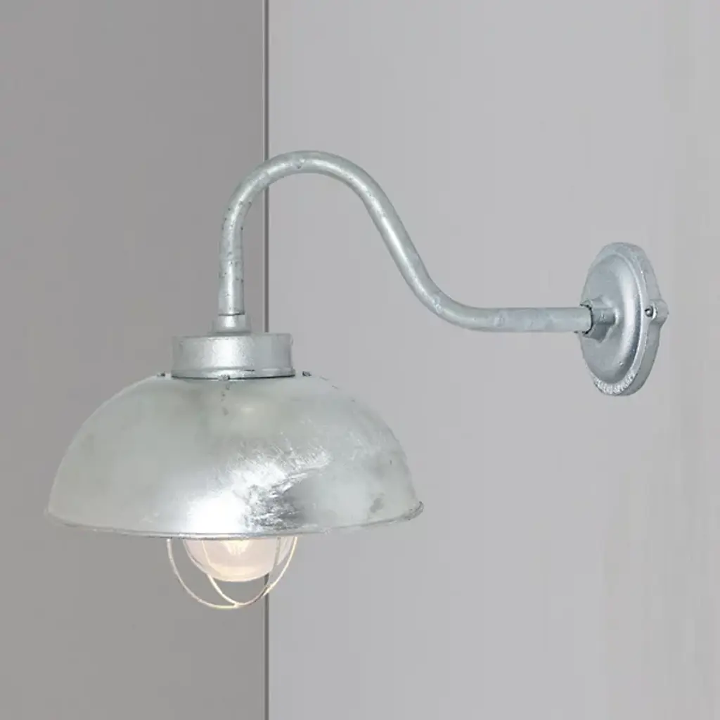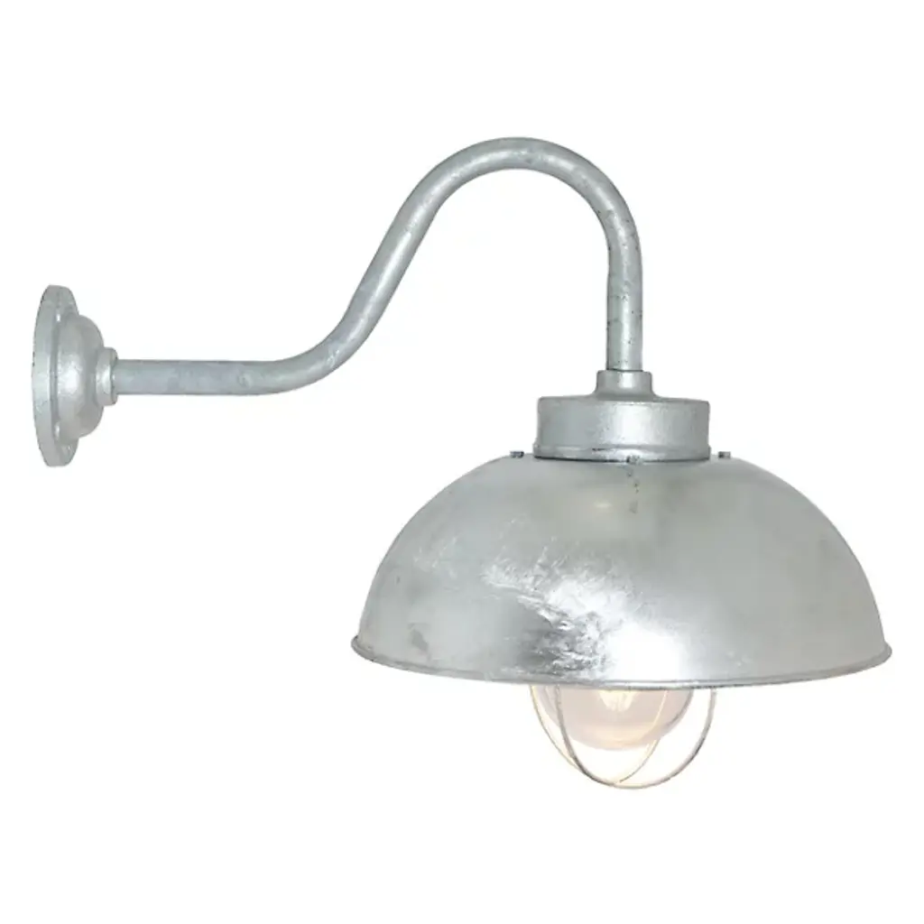 Inspired by Britain’s maritime history, the Original BTC/Davey Lighting Shipyard Outdoor Wall Sconce is an industrial-grade fixture handmade in the metal works factories of central England. Protected by a metal dome reflector shade, the oblong shape of the glass diffuser is reminiscent of traditional ship deck fixtures, which is then further protected by a matching metal guard. Galvanized metal details give additional sturdiness to the fixture, elegantly executed to withstand outdoor environments.