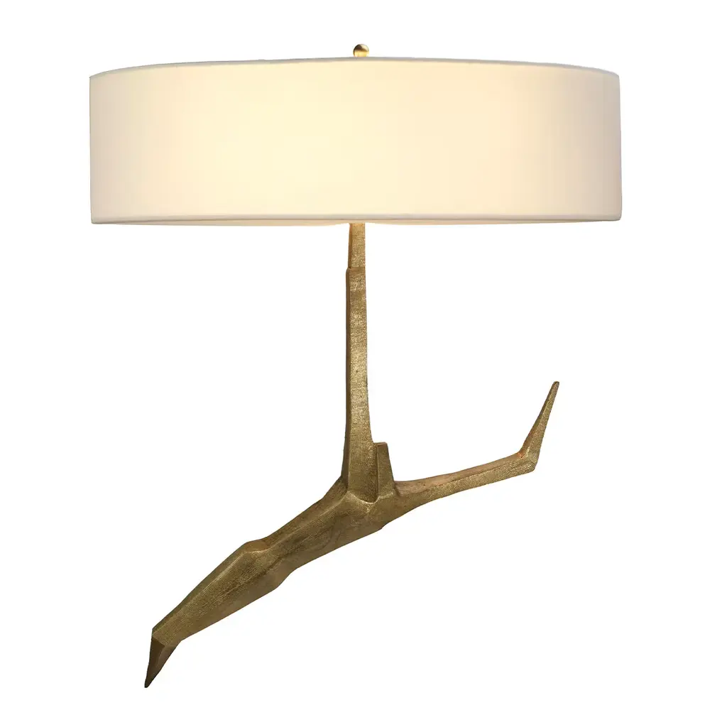 A vaguely anthropomorphic design of refined artistic allure, this wall lamp provides illumination while making a sophisticated decorative statement. A suffused glow filters through the linen shade, enhancing the lamp's dynamically sculpted silhouette of anthropomorphic inspiration. A female counterpart is available in the Artemest catalog. It fits a single E14 bulb that is not included with purchase.