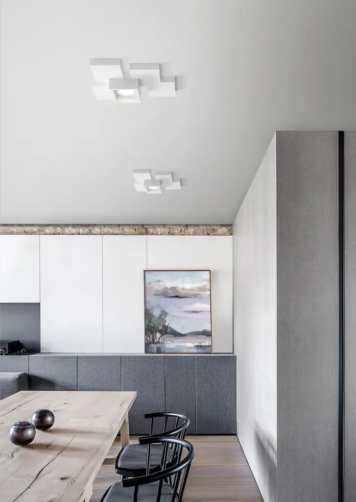 Side is a plaster ceiling/wall lamp with one light. Bulb type: fluorescent or LED. A++cod. T291: 1 GX53cod. T292: 2 GX53cod. T293: 3 GX53