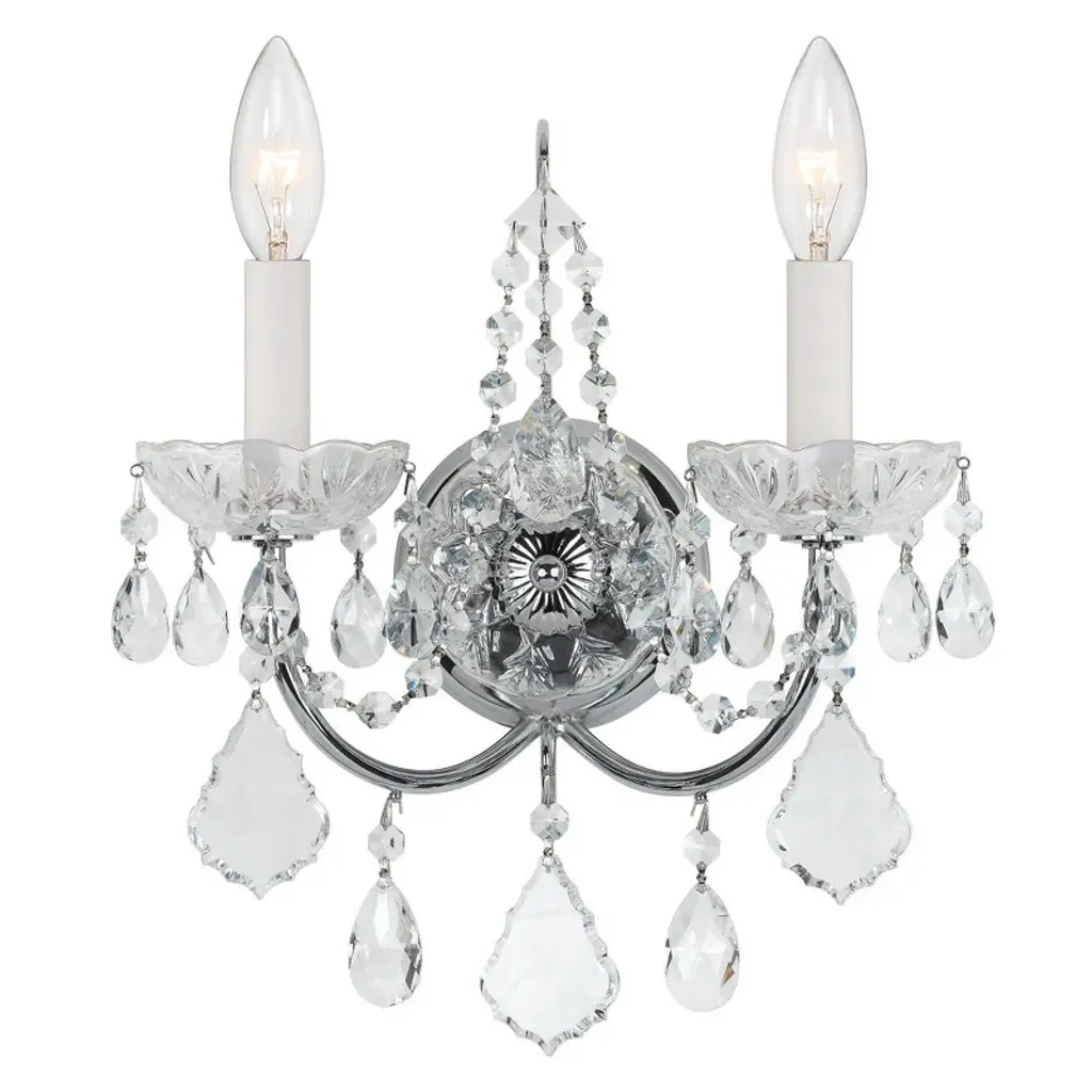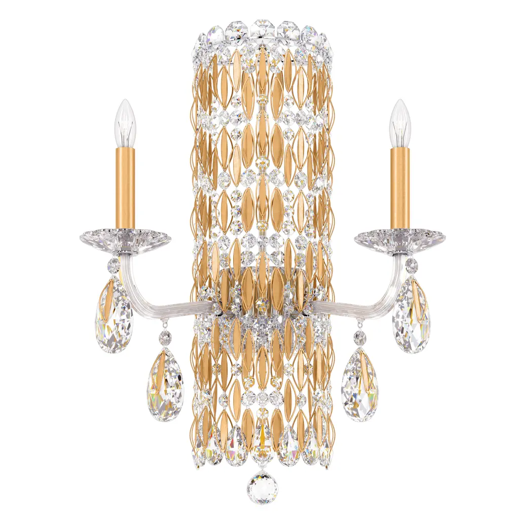 A waterfall of metal discs and crystal beading glimmers around fine glass arms. Sarella's classic marriage of hand-finished metal and multifaceted crystal drops sheds a beautiful, soft light on your interior. An instant heirloom, it has been interpreted in different styles, from the traditional frame enhanced by round branches, to the simple bejeweled columns perfect for intimate areas.