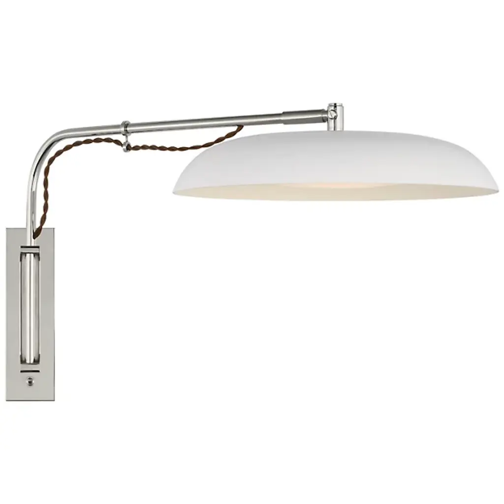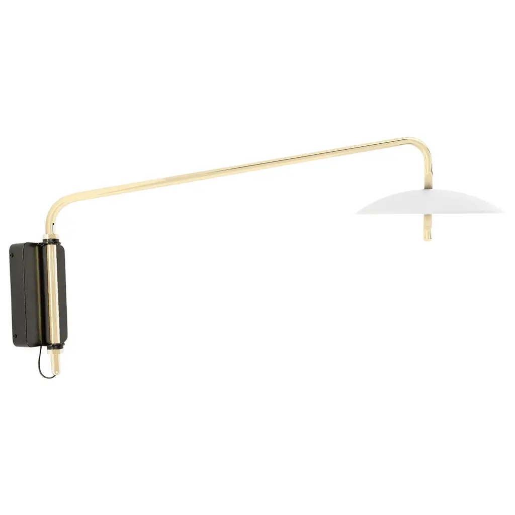 Signal Swing Arm Sconce, White X Brass, Short, Hardwired, Souda, Made To Order