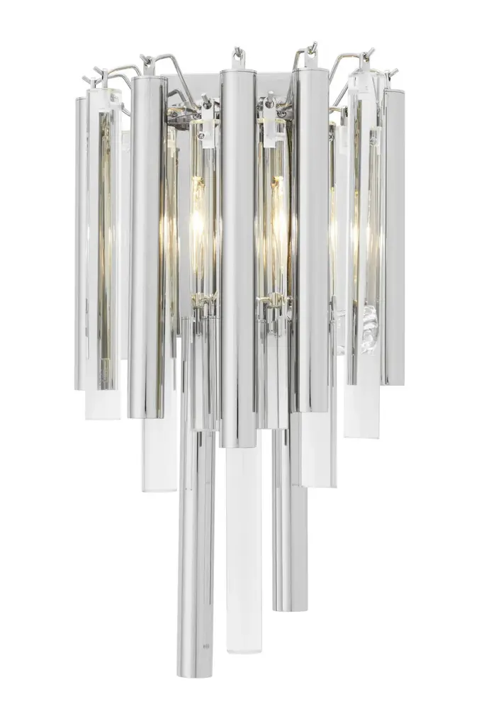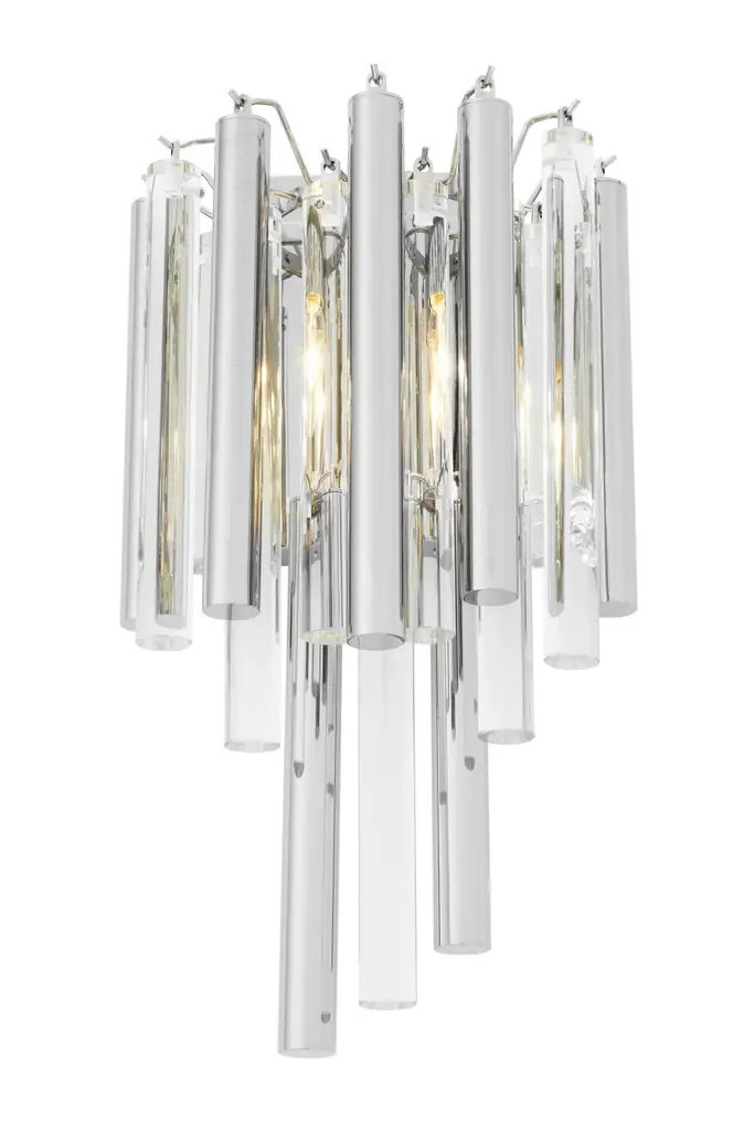 Capture the look of pure luxury with the Gigi Wall Lamp. Like a glamorous piece of jewelry, this lustrous luminary provides optimum radiance in your decor. The Art Deco style fixture features a semi-circular tapered body with rods of clear glass and nickel-finished metal.