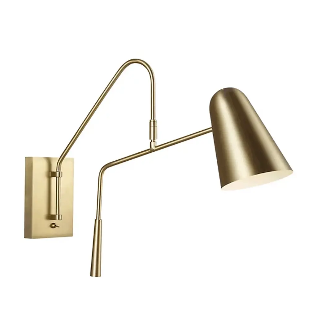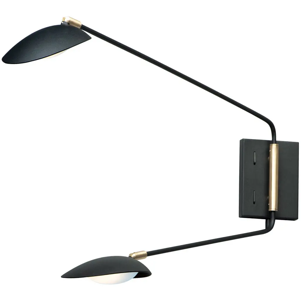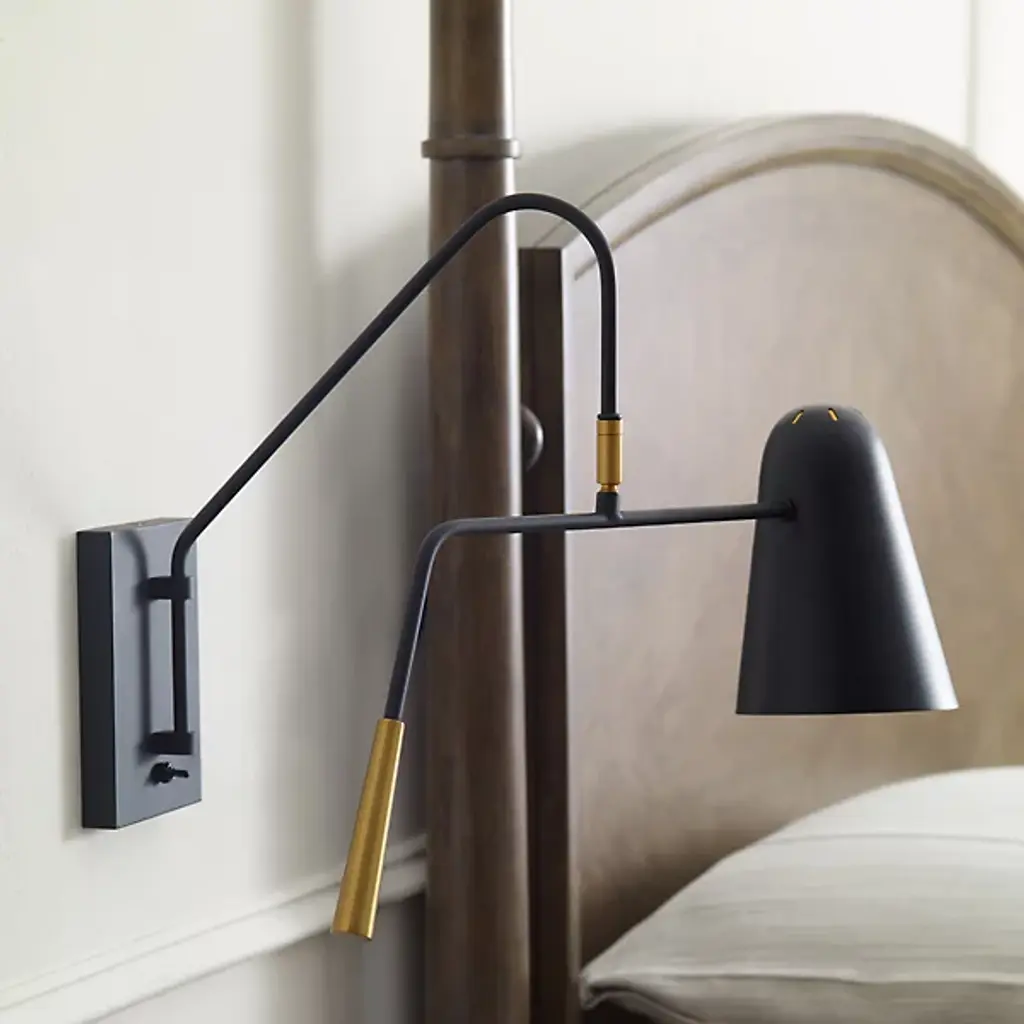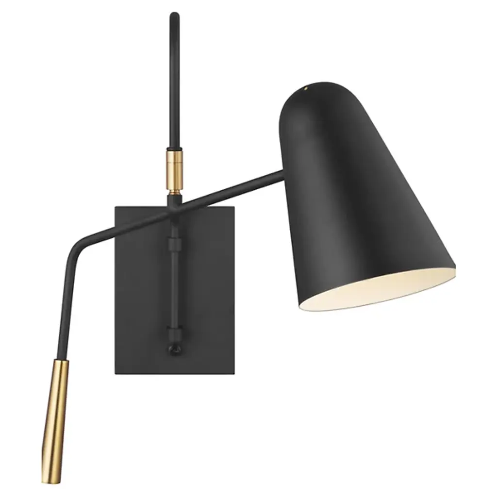 Slim beauty, contemporary versatility. The Simon Wall Sconce from Visual Comfort Studio, formerly known as ED Ellen DeGeneres, has a slender design and simple functionality. A slim handle allows you to position the light exactly where you want it, which makes it the perfect addition to a bedroom for some nighttime reading. It’s made out of steel, which gives it durability, and it’s finished in Midnight Black with Burnished Brass accents for a vintage feel to this otherwise modern light fixture.