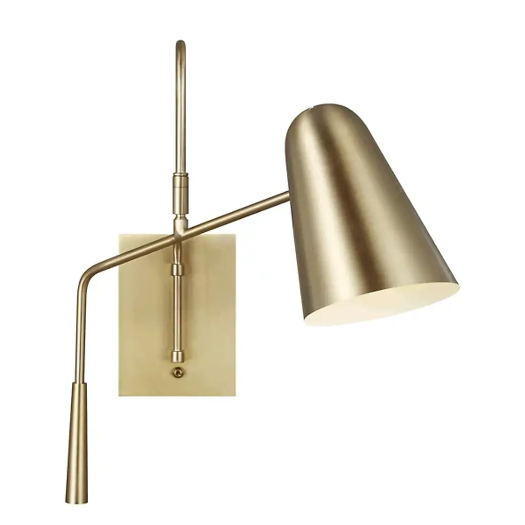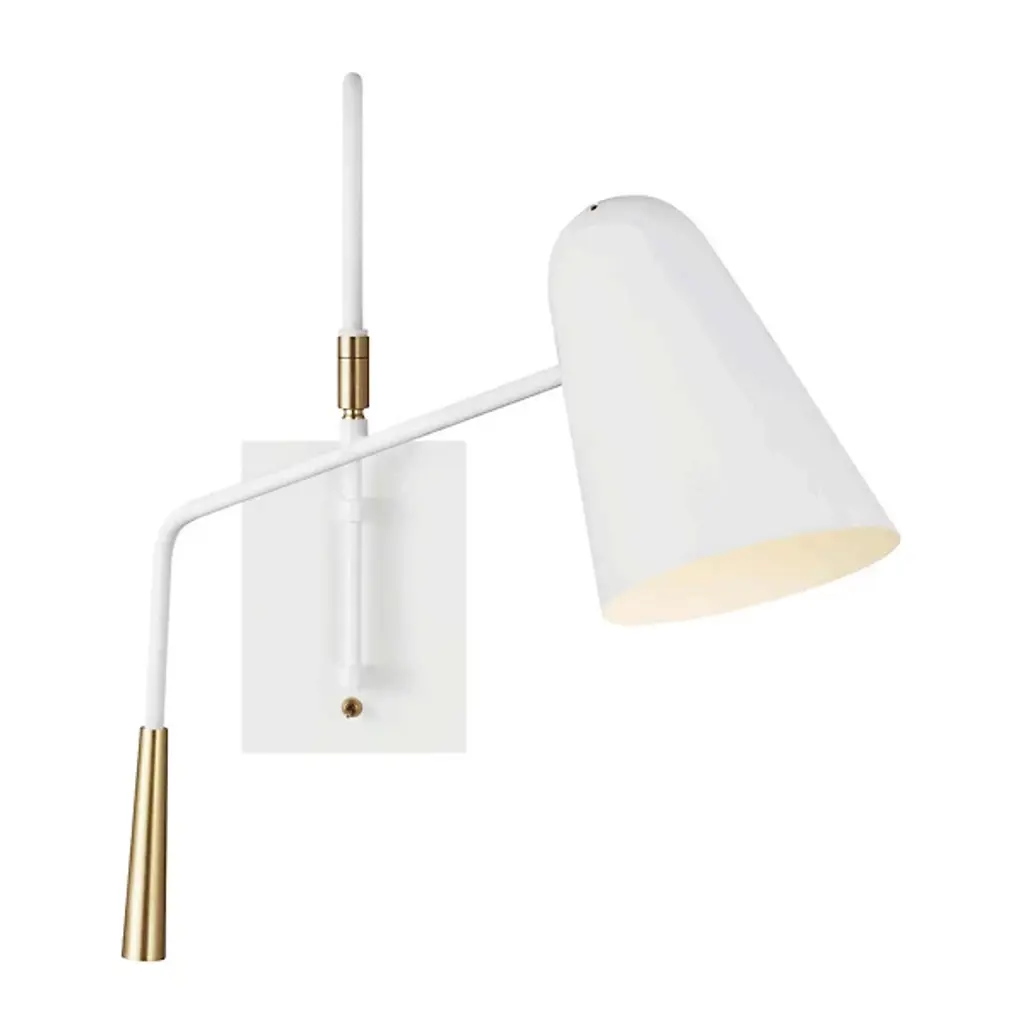 Slim beauty, contemporary versatility. The Simon Wall Sconce from Visual Comfort Studio, formerly known as ED Ellen DeGeneres, has a slender design and simple functionality. A slim handle allows you to position the light exactly where you want it, which makes it the perfect addition to a bedroom for some nighttime reading. It’s made out of steel, which gives it durability, and it’s finished in Midnight Black with Burnished Brass accents for a vintage feel to this otherwise modern light fixture.
