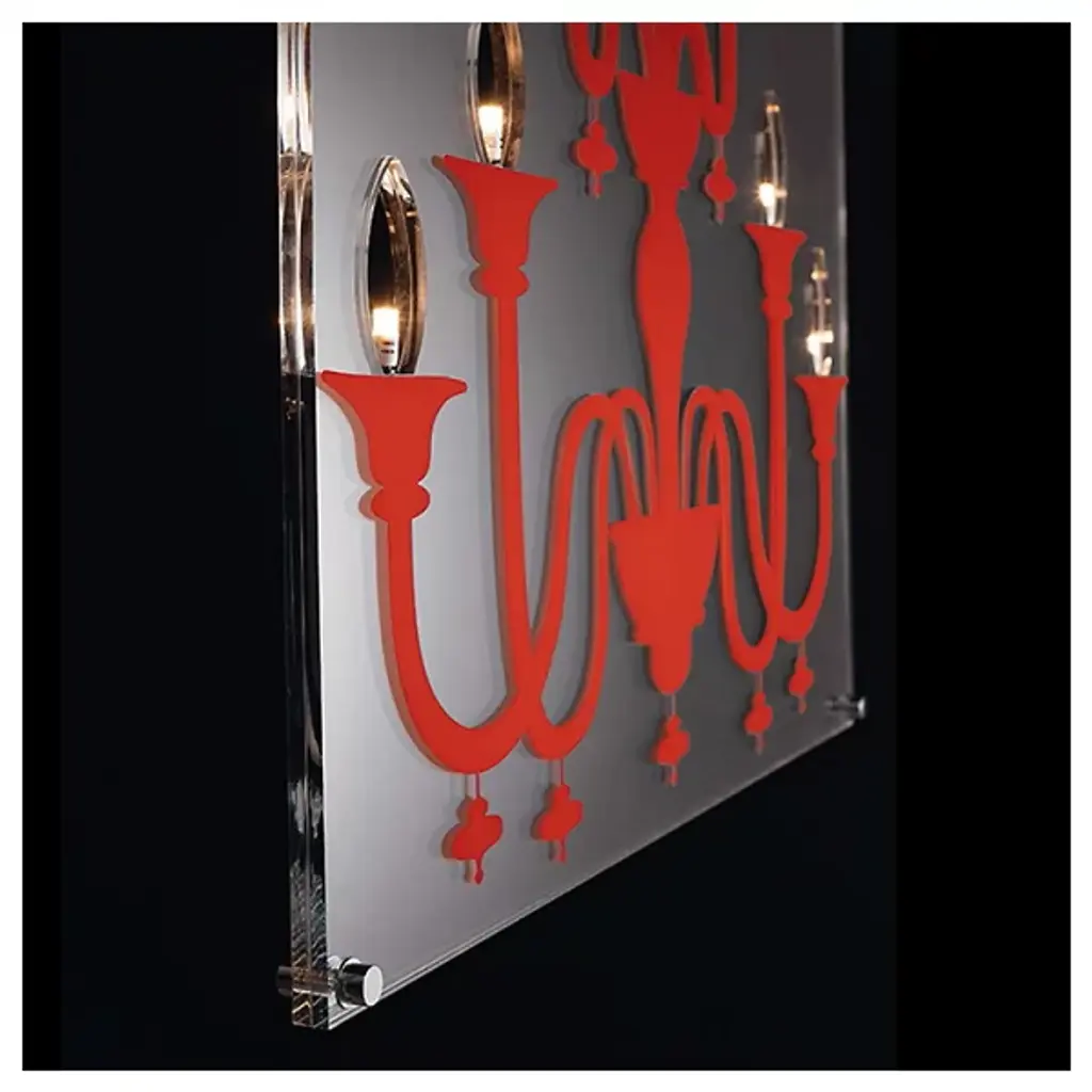 The unique Sinfonia Wall Sconce is sure to command attention in any modern decor. This stunning wall sconce features a metal structure with all the components in a chrome finish. The methacrylate diffuser is available in a transparent shade with white, red or black decorations. Suitable for both residential and commercial applications, the Sinfonia Wall Sconce looks best in modern living rooms, kitchens and dining areas.