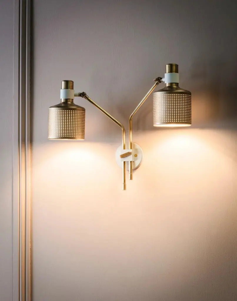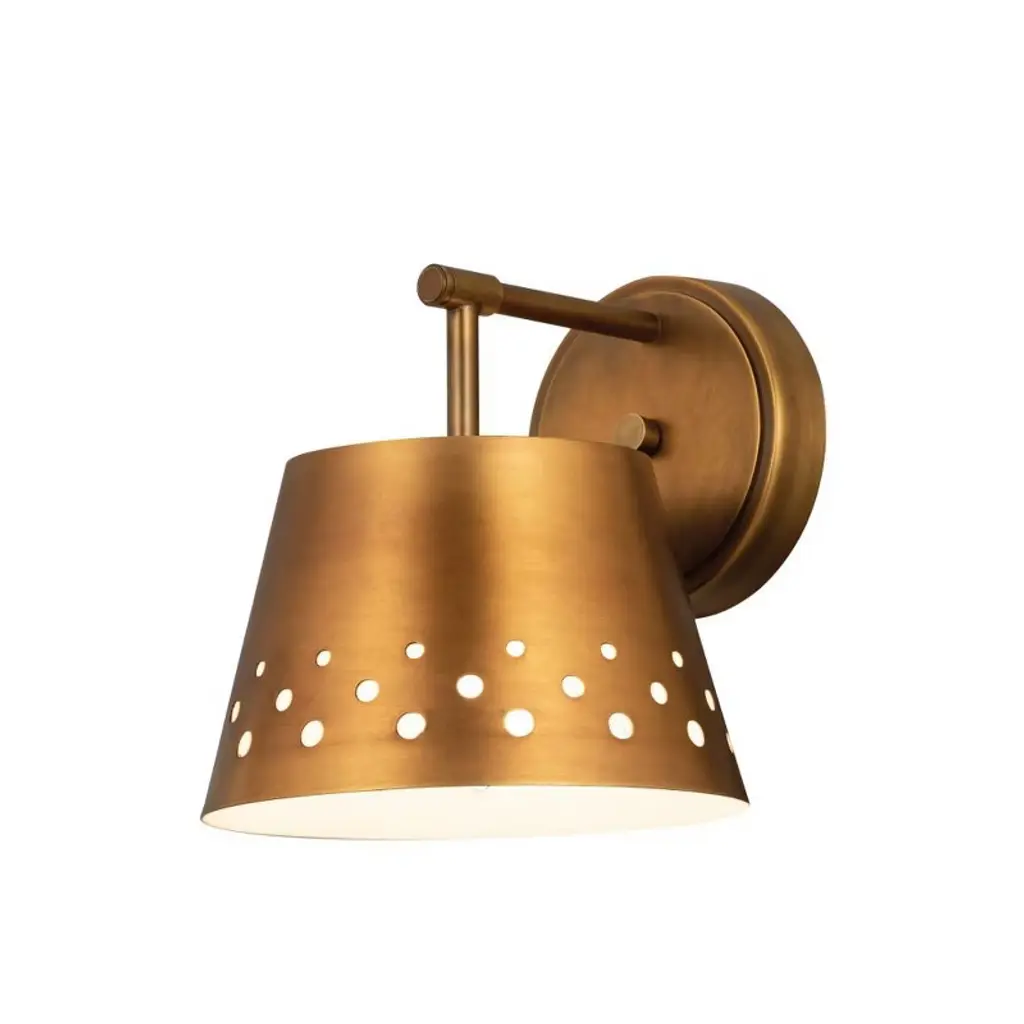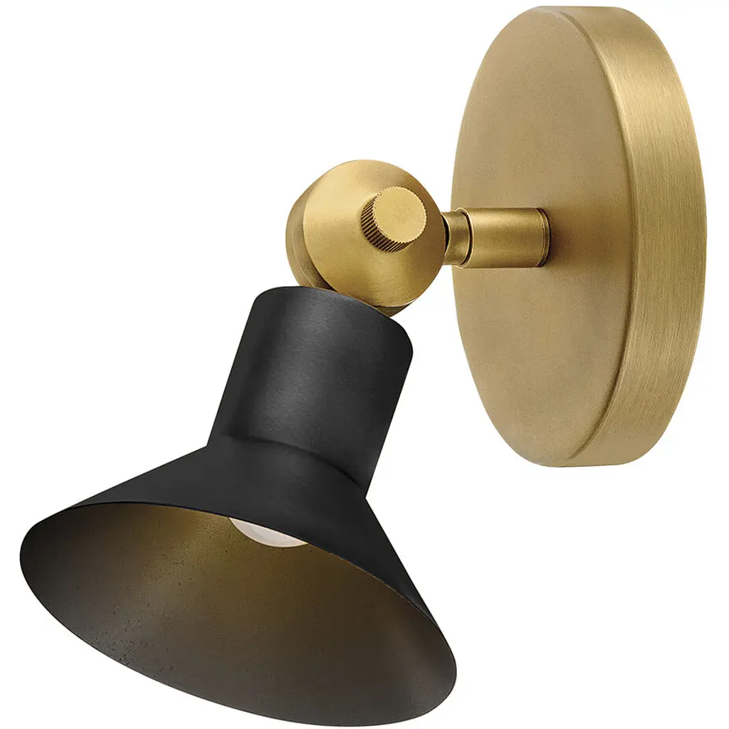 Single Riddle wall lamp by Bert FrankDimensions: H 19 x 12 x 18 cmMaterials: Brass Available finishes: Brass and blackAll our lamps can be wired according to each country. If sold to the USA it will be wired for the USA for instance.When Adam Yeats and Robbie Llewellyn founded Bert Frank in 2013 it was a meeting of minds and the start of a collaborative creative partnership with engineering at the core.Both men share a love of design and deep respect for the heritage of British engineering. Both wanted to create high-end products that would stand the test of time and fly in the face of throwaway consumerism. The partnership has resulted in award-winning lighting and accessories that fuse the integrity of the small-scale workshop with timeless aesthetics reimagined for today.The two men work closely together from concept to end product. Robbie’s imagination and occasional flights of fancy are informed by Adam’s understanding of engineering principles and fabrication techniques. Equally, Adam's designs are often the starting point for a collection. In that sense Bert Frank is a true creative collaboration. As a result, every designed is honed to perfection, every detail carefully considered.